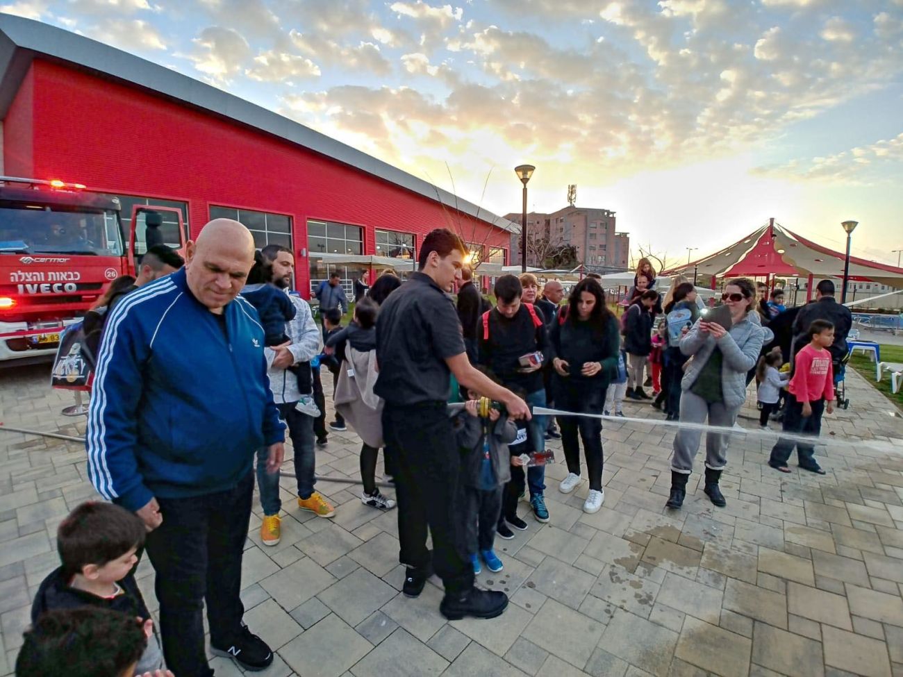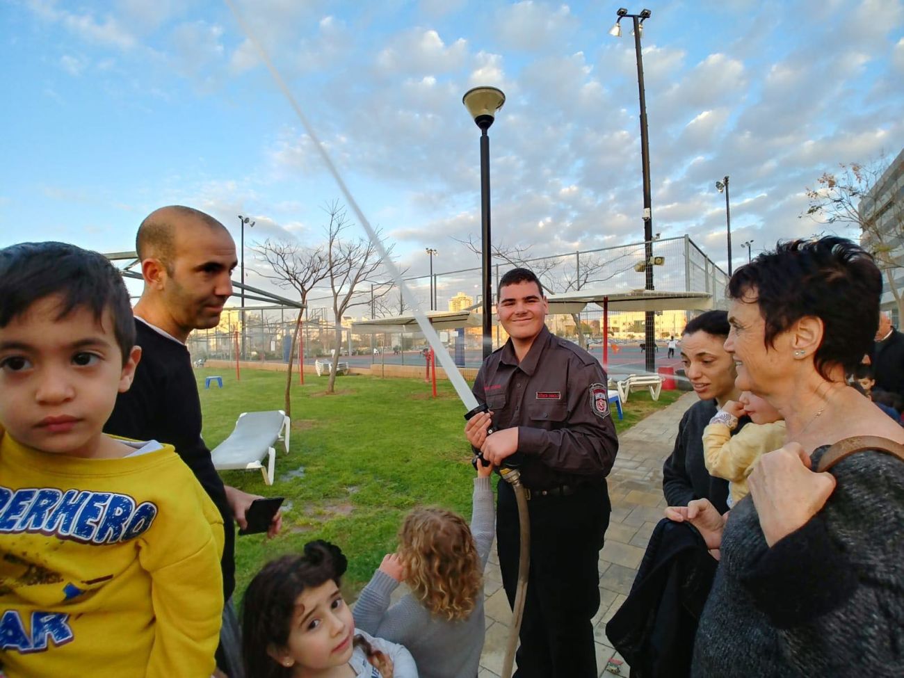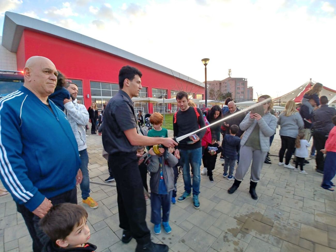 הילדים נהנו בשימוש בזרנוקים, להתיז מים ומצילומים יחד עם בובות סמי הכבאי שהסתובבו בין המשתתפים