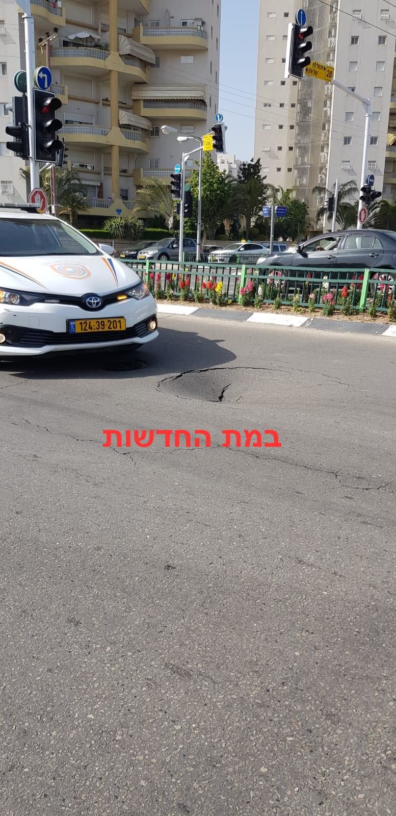 בולען נפער באמצע הכביש בראשון לציון