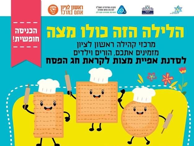 החל ממחר (חמישי 11.4) יתקיימו במתנ"סים בראשון לציון: נעורים, כרמים, רמת אליהו, קריית גנים, נווה חוף, מישור נוף ורביבים בראשון לציון סדנאות אפיית מצות לכל המשפחה. פירוט האירועים בכתבה