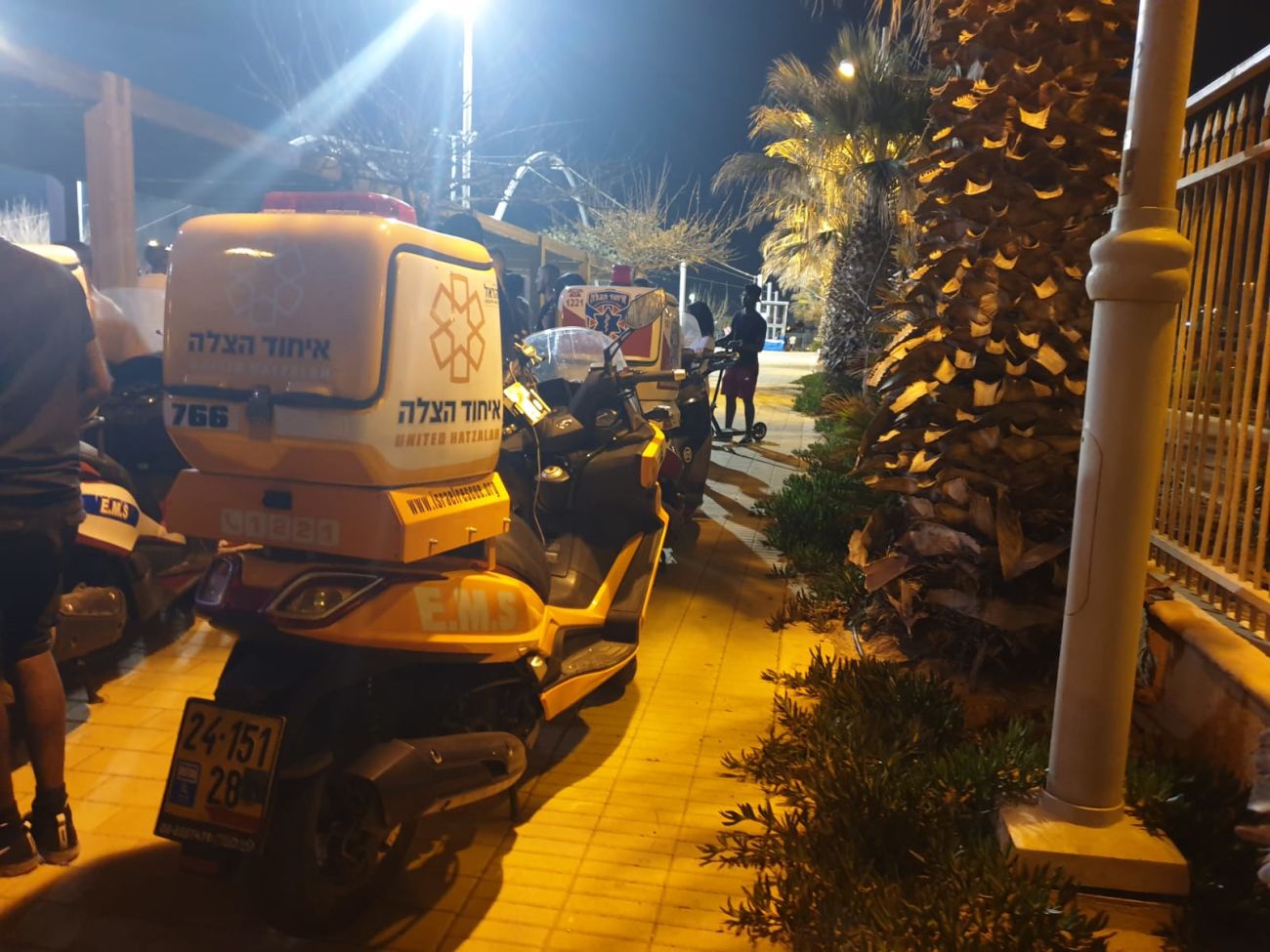 בשעה 19:49 התקבל דיווח במוקד 101 של מד"א במרחב איילון על נער שנפצע ככה"נ במהלך קטטה ברחוב הטיילת סמוך לחוף הים בראשון לציון. חובשים ופראמדיקים של מד"א מעניקים טיפול רפואי ומפנים לבי"ח וולפסון צעיר כבן 22 במצב קשה, לא יציב, עם פציעה מדקירה בפלג גופו העליון.