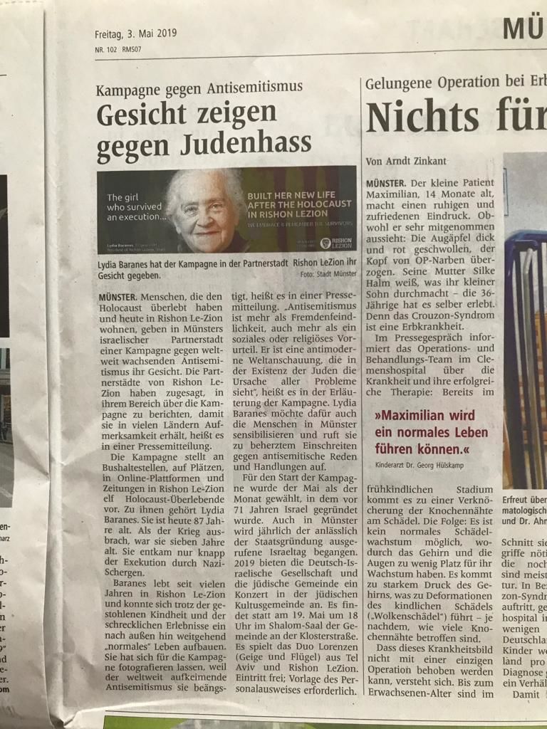 התקשורת בגרמניה סקרה את המיזם המרגש אשר הוביל רז קינסטליך בראשון לציון וב – 5 מדינות באירופה של העלאת קמפיין השילוט עם 11 ניצולי שואה אשר הקימו את ביתם בראשון לציון