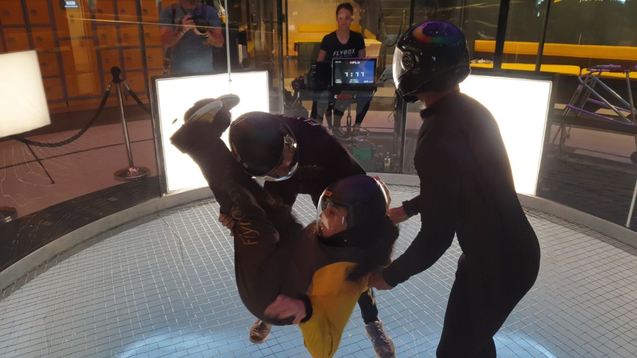 חניכי "ניצני ראשון" נכנסו לחדר הדרכה וקיבלו הסבר מהמנכ"ל על המקום ועל הנעשה בו. לאחר הסירטןן הממחיש את תחושת התעופה התלבשו הילדים בסרבלים בקסדות ובציוד המיוחד. הם נכנסו למנהרת הרוח בהדרכה צמודה ופרטנית והחלו לעוף ולהתרגש מכל רגע. 3 מדריכים דאגו להרים כל חניך מכיסא הגלגלים והעניקו להם תחושה מעצימה שהם כמו כולם.