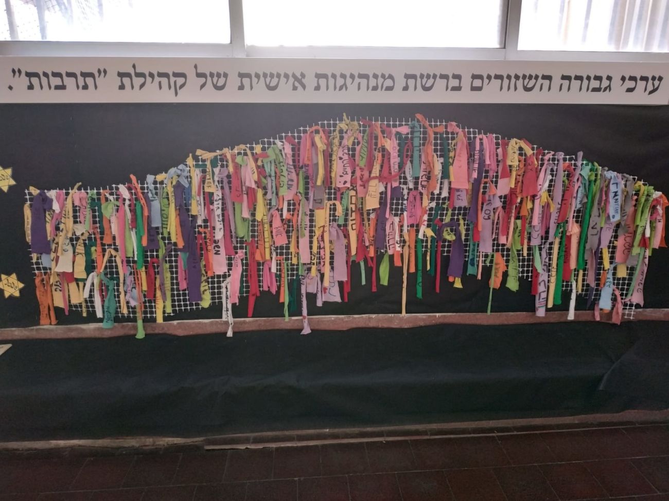 ביום זיכרון לשואה הגיעה התוכנית לשיאה כאשר נערך טקס מרגש בבית הספר והוצגה תערוכת התלמידים ששיקפה את הלמידיה והעשייה המשמעותית שלהם בנושא. את תפילת "יזכור" נשא רב סרן ברק דרזנר, בוגר ביה"ס ונכד לניצול שואה. הטקס הסתיים במיצג "ערכי גבורה השזורים ברשת מנהיגות אישית של קהילת תרבות". במיצג לקחו חלק כל קהילת ביה"ס: תלמידים, הורים, צוות חינוכי ומבקרים- בו כל אחד שזר ברשת רצועת בד, עליה כתב ערך/ חוויה שלקח מתהליך הלמידה.