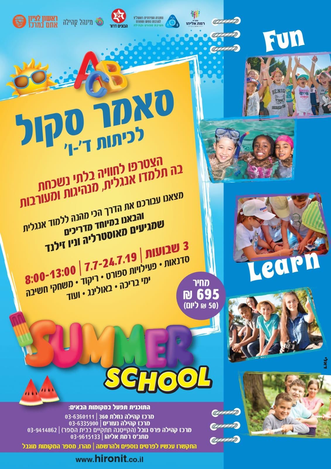 לראשונה בראשון לציון! ביוזמת מחזיקת תיק החינוך עו"ד ליאל אבן זהר יפתחו בקיץ לתלמידי כיתות ד-ו קייטנות סאמר סקול ללימוד אנגלית ב 4 מרכזים קהילתיים בראשון לציון