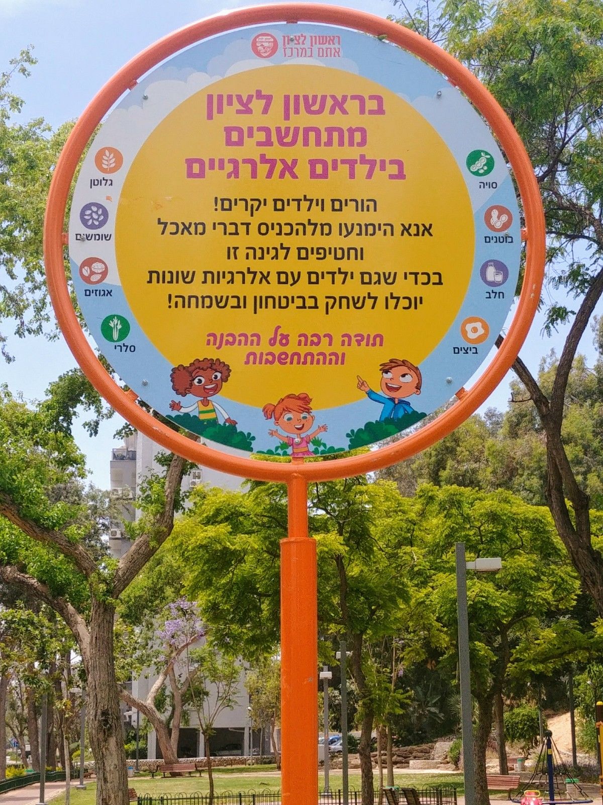 בנוסף פיילוט נוסף שהחל גם השבוע בגנים הציבוריים הוא הצבת שלטים הקוראים לתושבי העיר להתחשב בילדים אלרגנים בסביבתם.