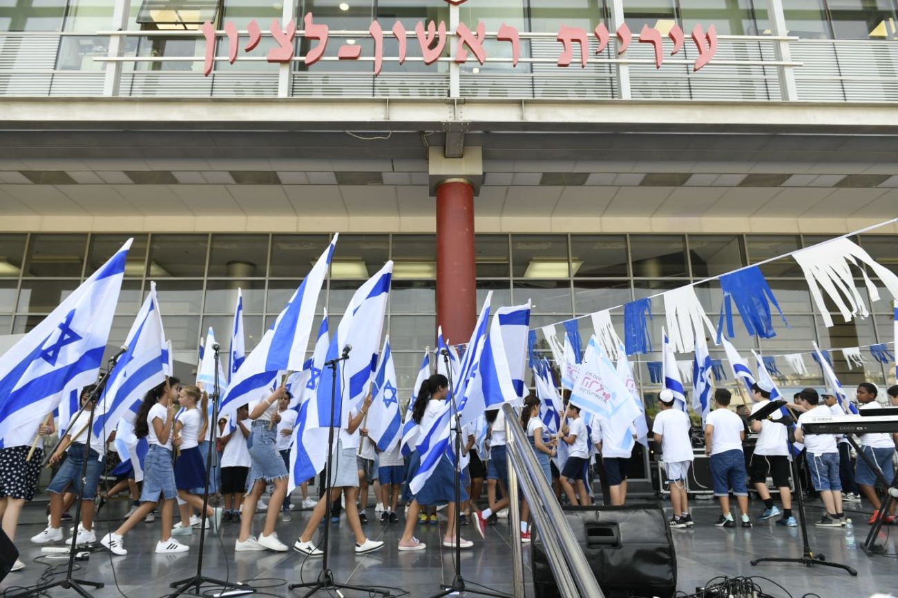 כאלף נערות ונערים השתתפו בריקוד הדגלים המסורתי ברחבת עיריית ראשון לציון, לרגל יום ירושלים