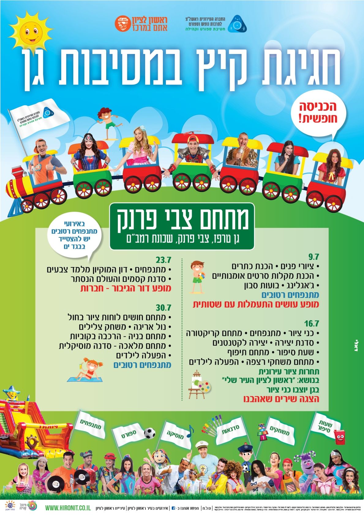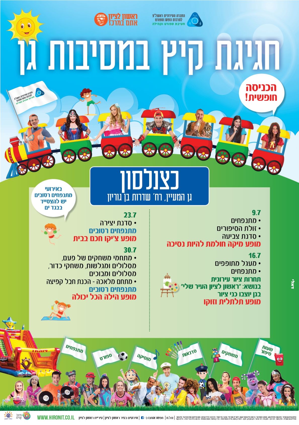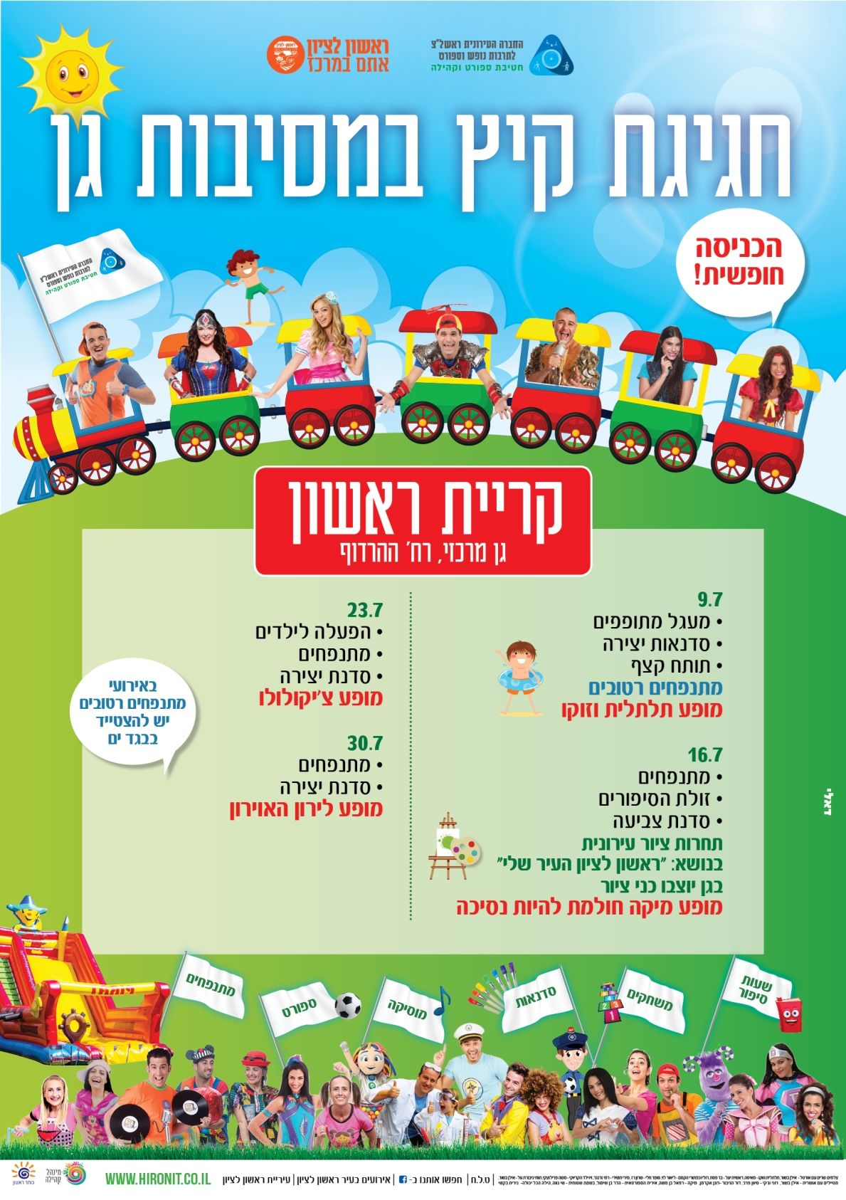 מסיבות הגן חוזרות לראשון לציון! החל מ9.7 יחזרו מסיבות הגן לילדים שיתקיימו ב 19 שכונות העיר; הילדים יהנו מהפעלות, הצגות ילדים, מתנפחים רטובים, סדנאות מדע ויצירה ועוד. פירוט השכונות והאירועים מצורף בכתבה