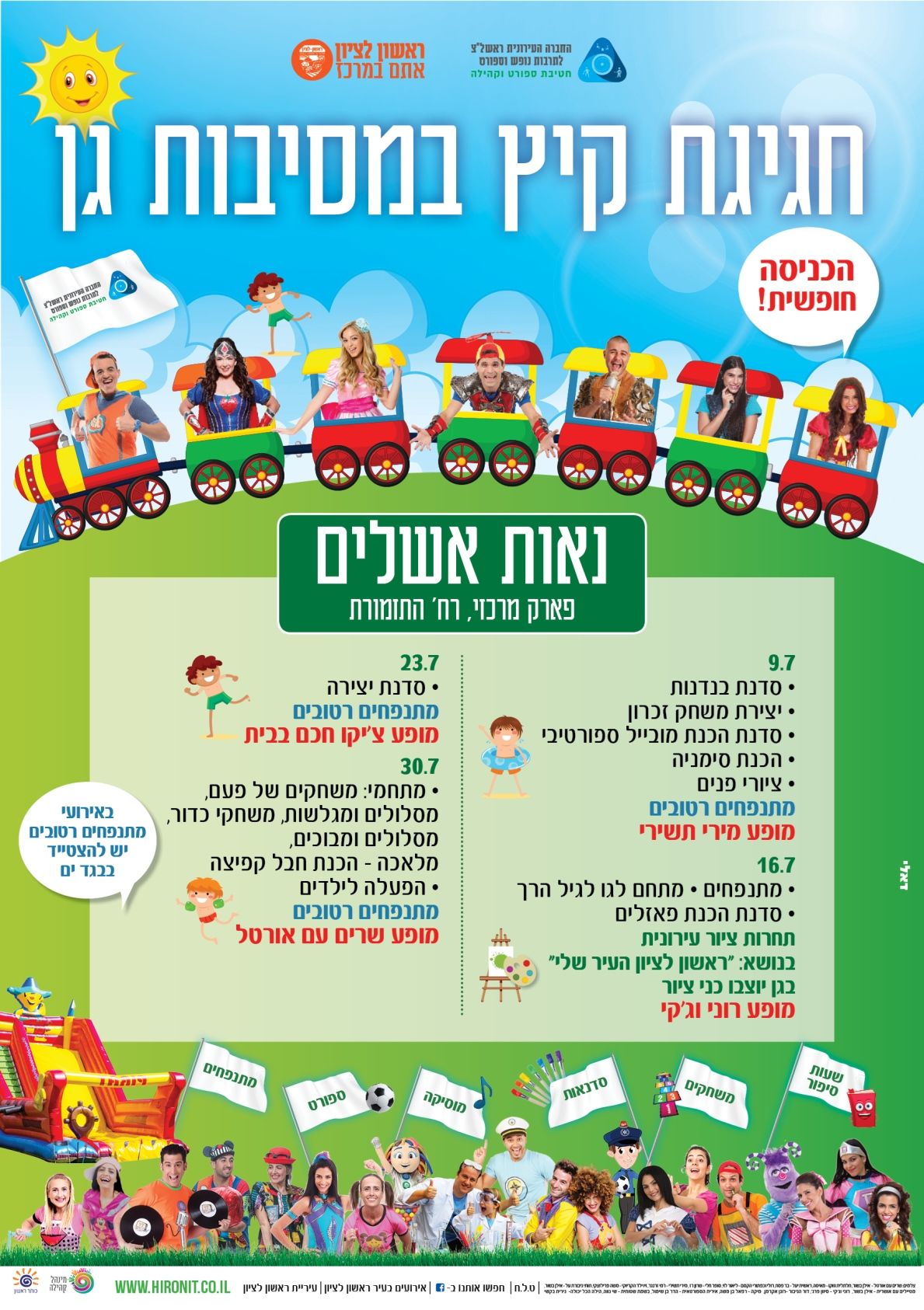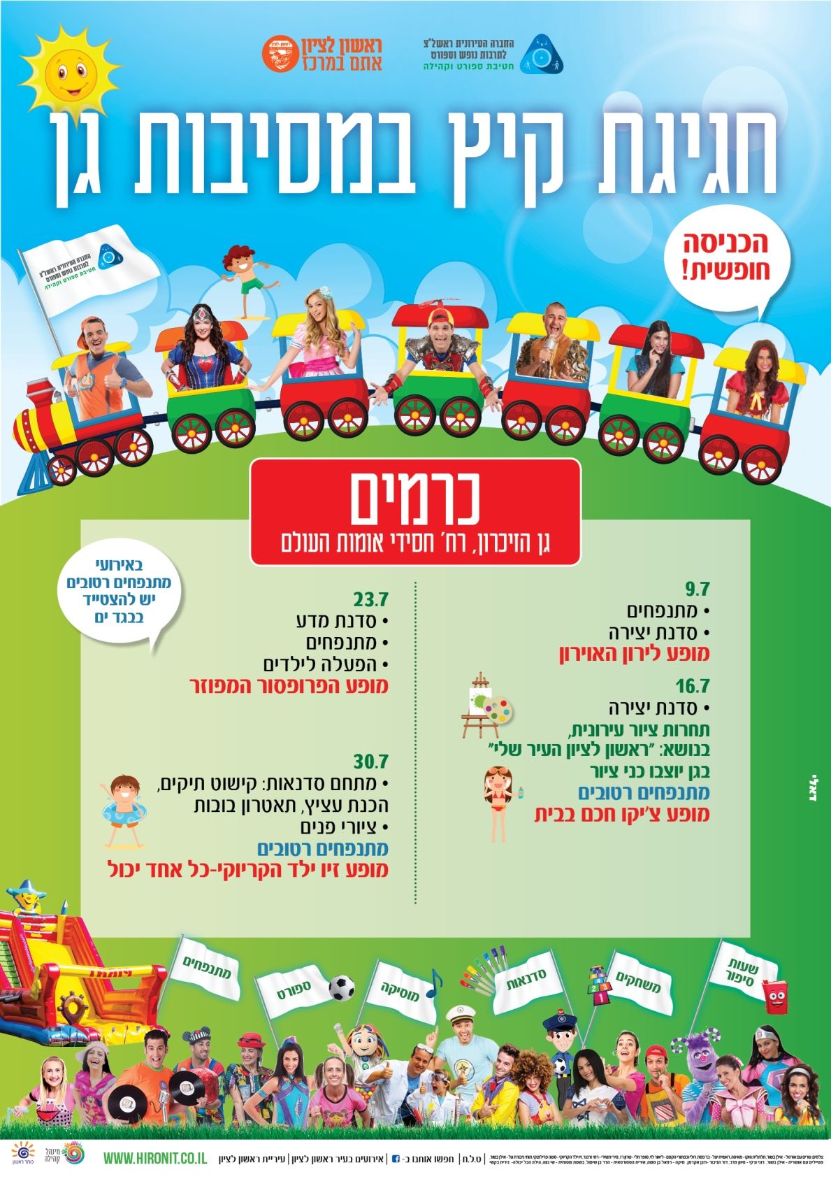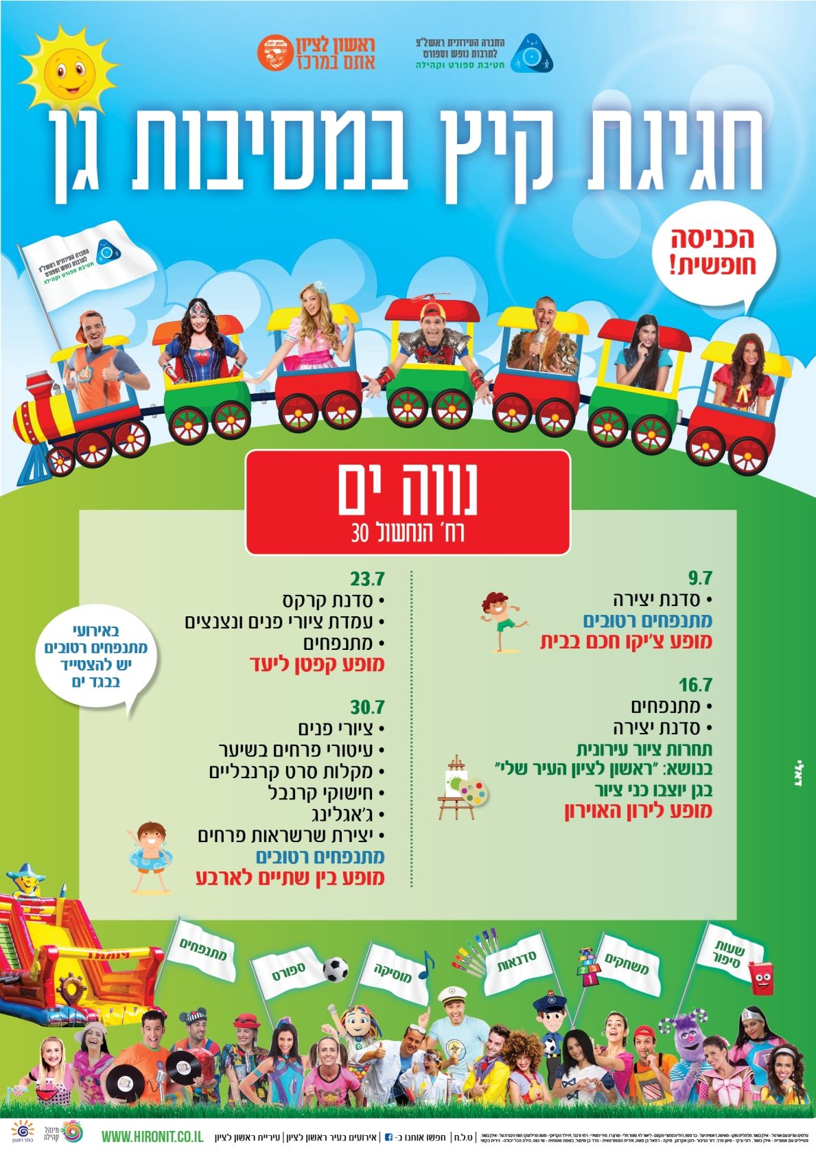מסיבות הגן חוזרות לראשון לציון! החל מ9.7 יחזרו מסיבות הגן לילדים שיתקיימו ב 19 שכונות העיר; הילדים יהנו מהפעלות, הצגות ילדים, מתנפחים רטובים, סדנאות מדע ויצירה ועוד. פירוט השכונות והאירועים מצורף בכתבה