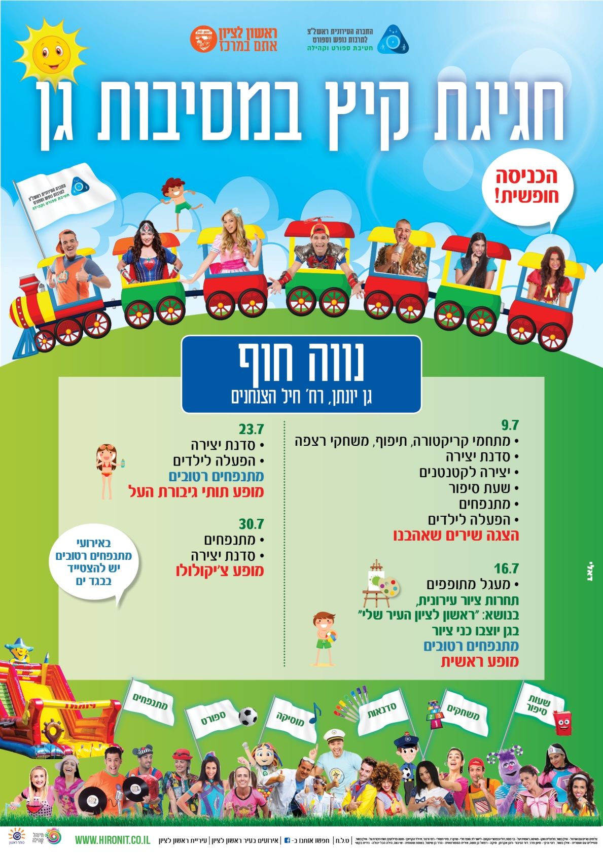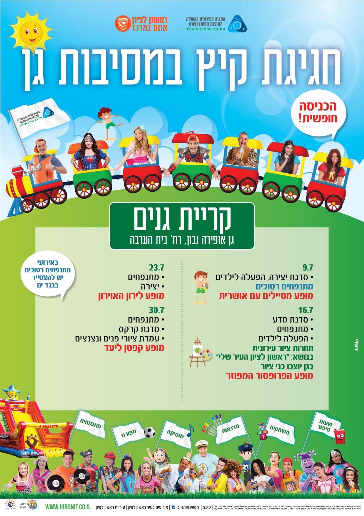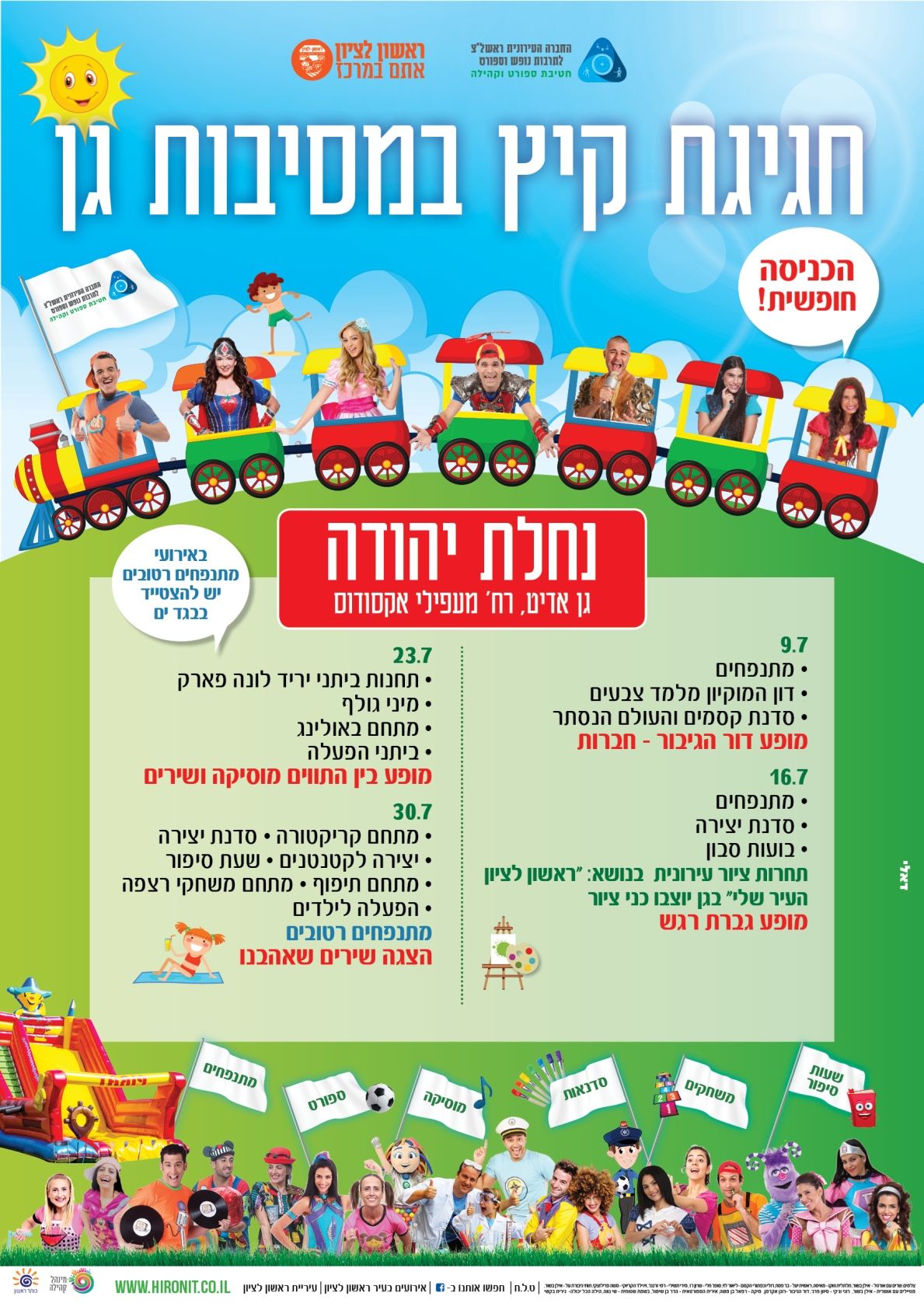 מסיבות הגן יתקיימו בתאריכים : 9.7, 16.7 23.7 ו30.7 החל משעה 17:30 בשכונות הבאות: