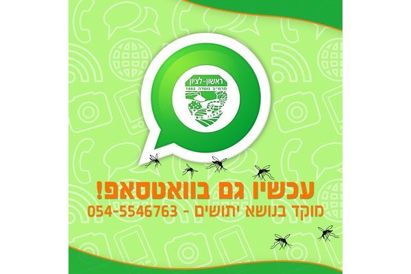 השירות של עיריית ראשון בוואטסאפ מתרחב! מהיום יוכלו תושבי ראשון לציון לפנות למוקד העירוני בנושא מפגעי יתושים בהודעת וואטסאפ לטלפון: 054-5546763