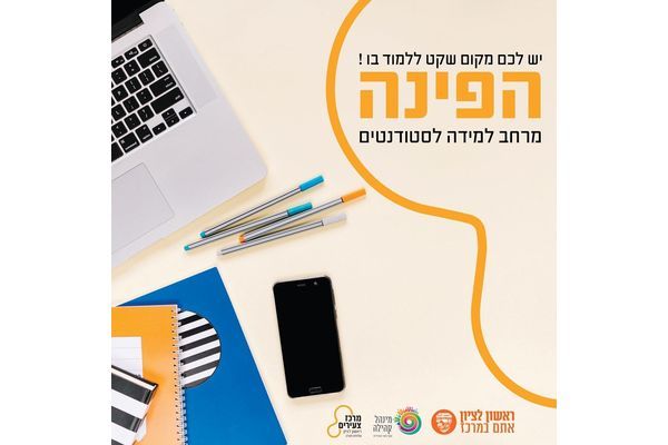 לידיעת הסטודנטים בראשון לציון במתנ"ס רמת אליהו, ספריית כותר ראשון תרמ"ב ובמרכז הצעירים ביבניאלי יעמדו לרשות הסטודנטים מרחבי למידה בתקופת חופשת הסמסטר והמבחנים.