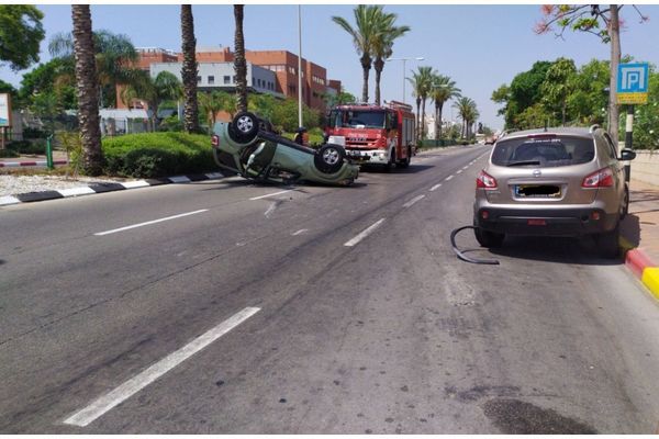 ביום שלישי 25/6 דיווח על תאונה ורכב הפוך ברחוב אלי ויזל בקרבת המכללה למנהל. מהרכב חולצה אישה פצועה במצב בינוני.