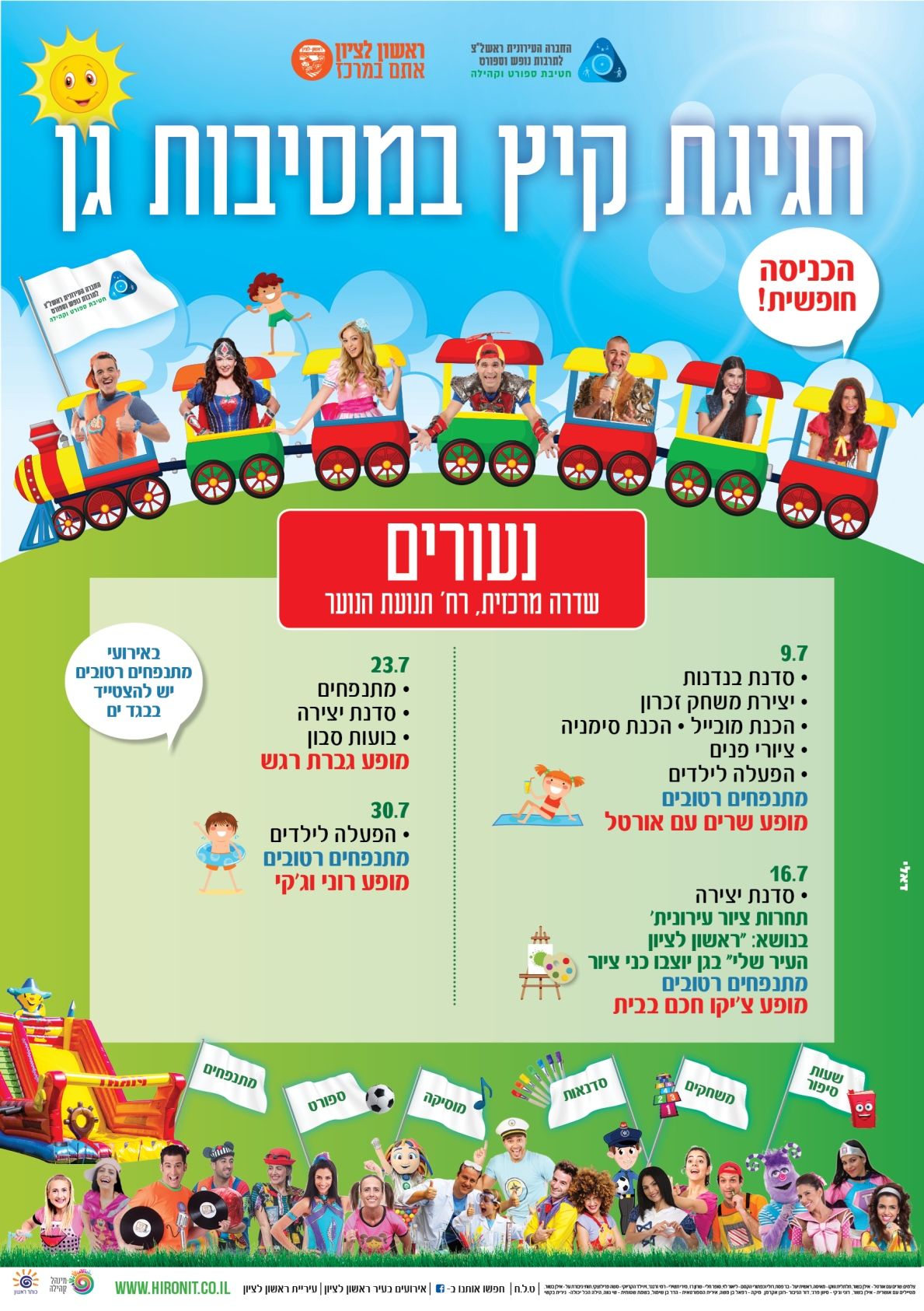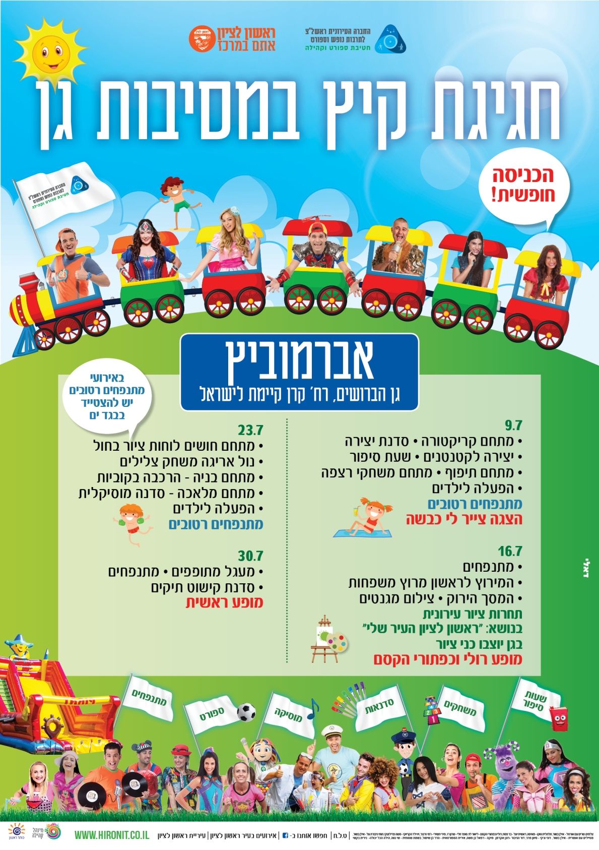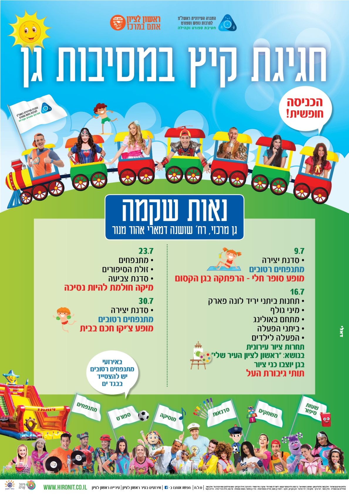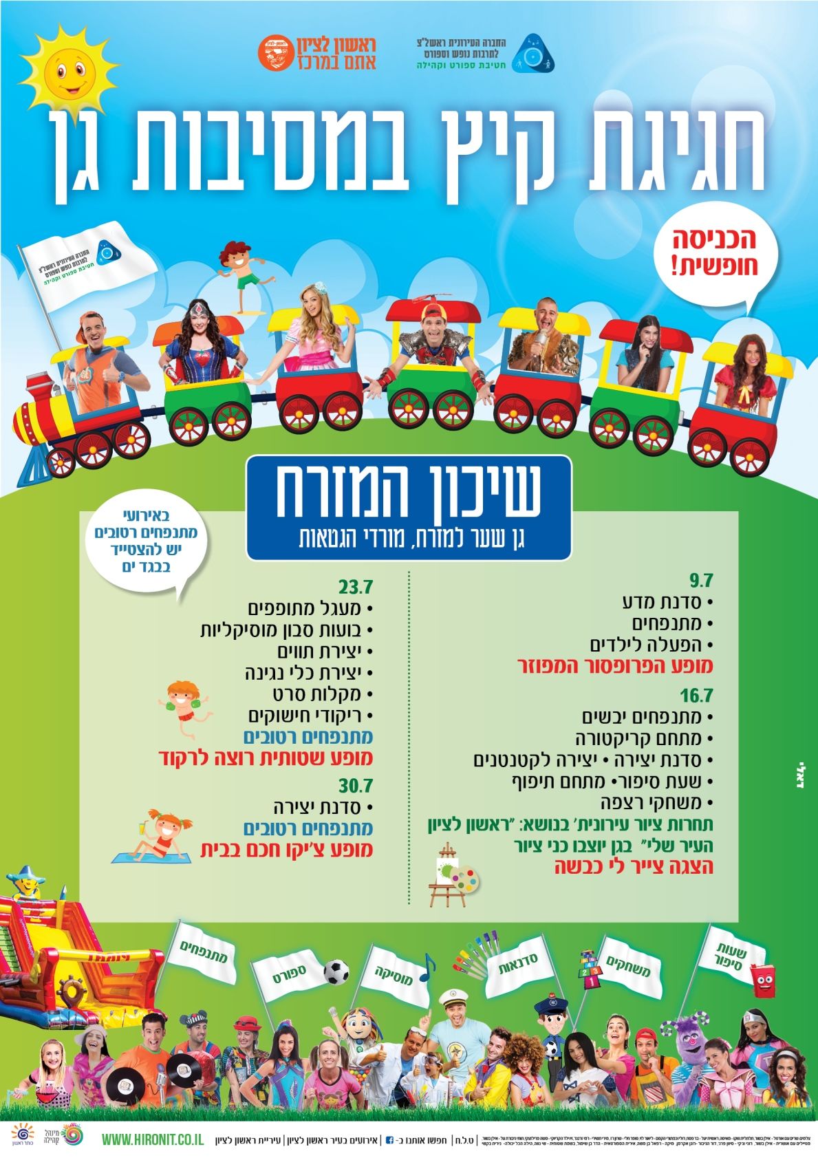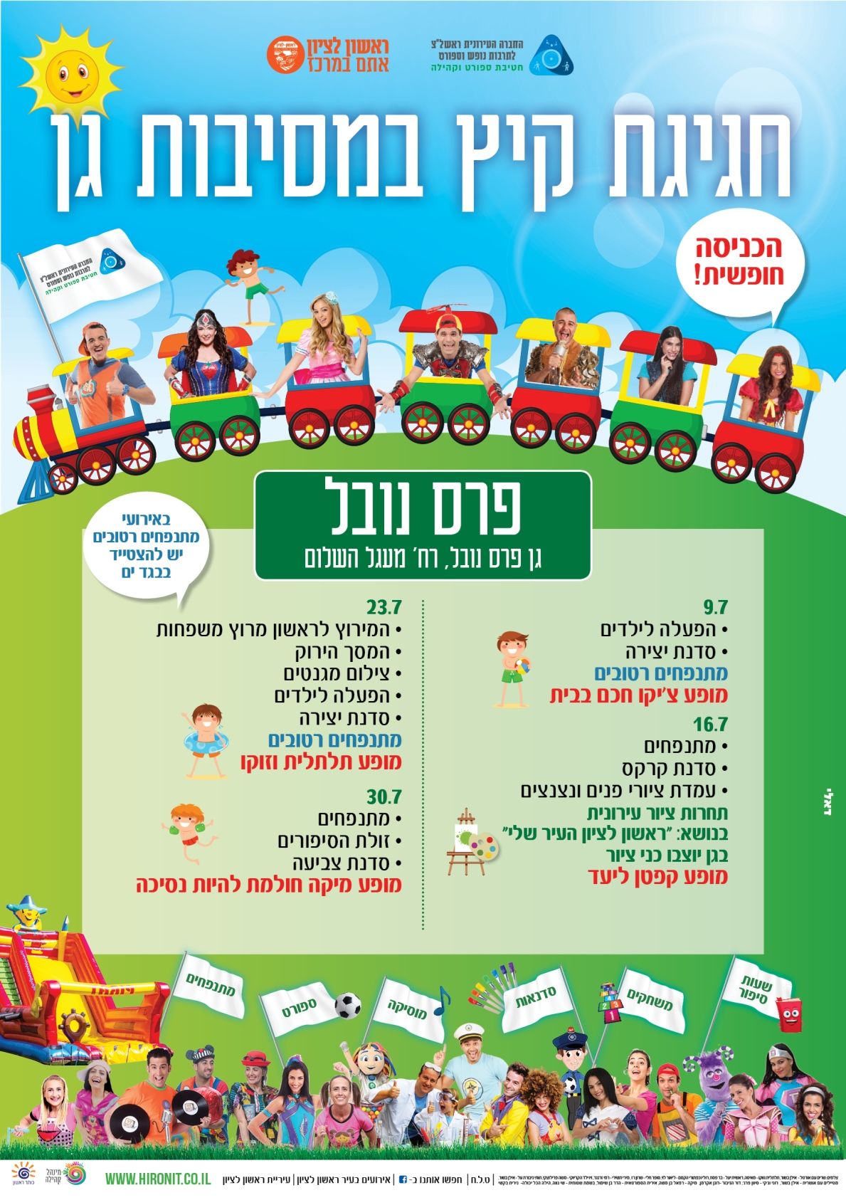 ביום שלישי 9.7 חוזרות מסיבות הגן בראשון לציון שיתקיימו ב 19 שכונות ברחבי העיר עם מתנפחים, הצגות, הופעות של כוכבי ילדים ועוד; פירוט האירועים המלא מצ"ב בכתבה