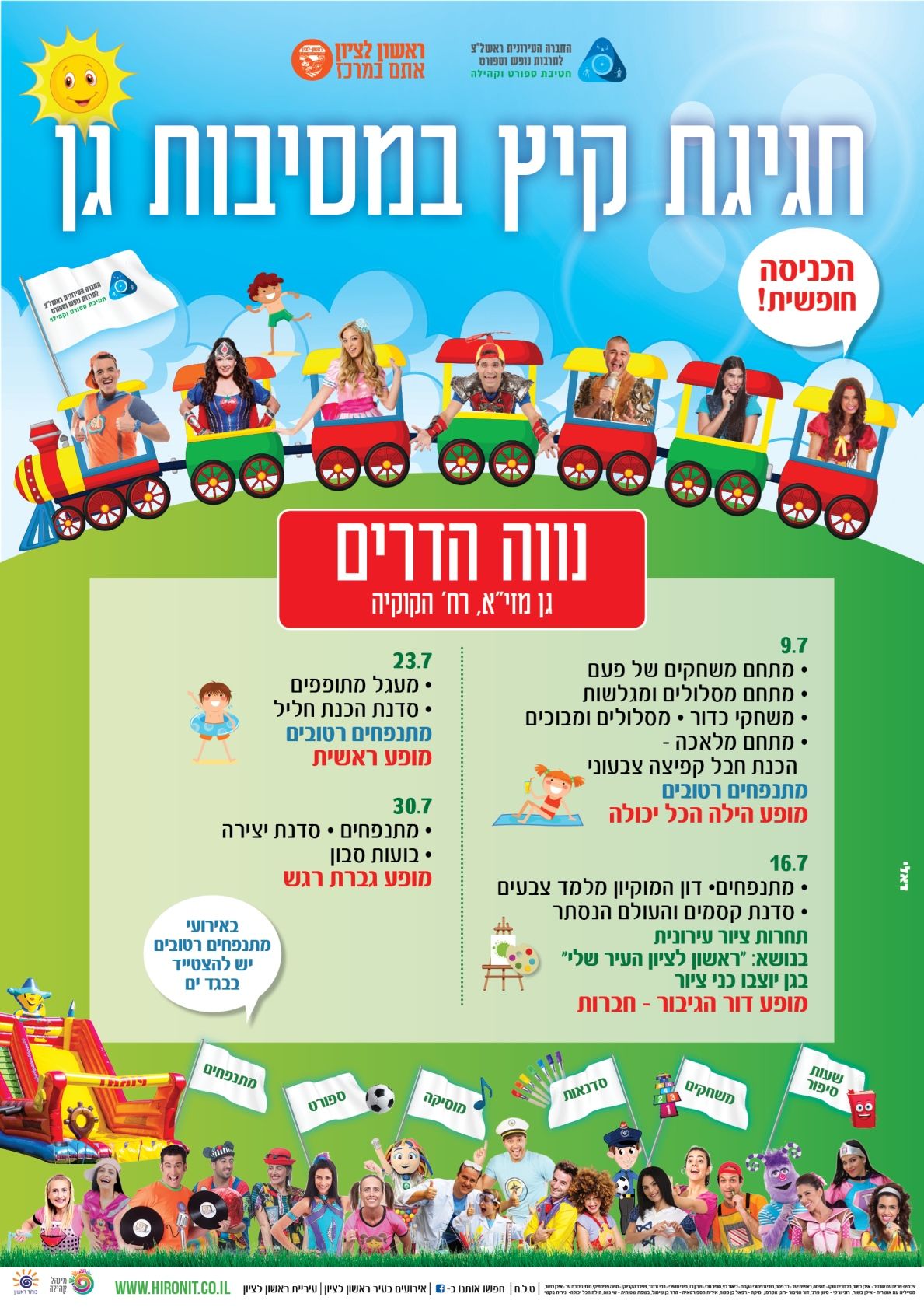 מסיבות הגן יתקיימו בתאריכים : 9.7, 16.7 23.7 ו30.7 החל משעה 17:30 בשכונות הבאות: