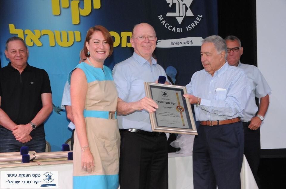 יצחק פרי, יו"ר קבוצת מכבי ראשון לציון בכדורסל, ויוסי גבע הקפטן המיתולוגי של מכבי ראשל"צ בכדוריד קיבלו את עיטור "יקיר מכבי ישראל" על תרומתם לטיפוח הספורט בישראל