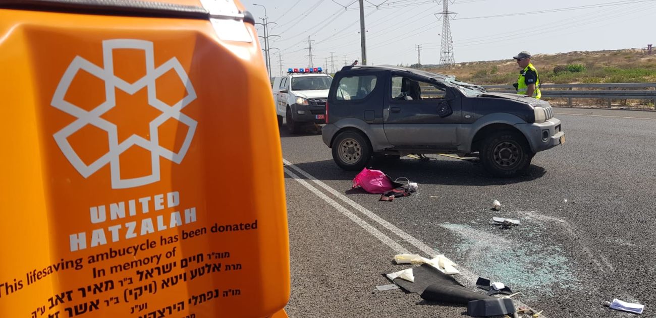 מבזק תאונה בראשון לציון! ג'יפ התהפך בכביש 4, פצועים קל. מצורף סרטון ותמונות