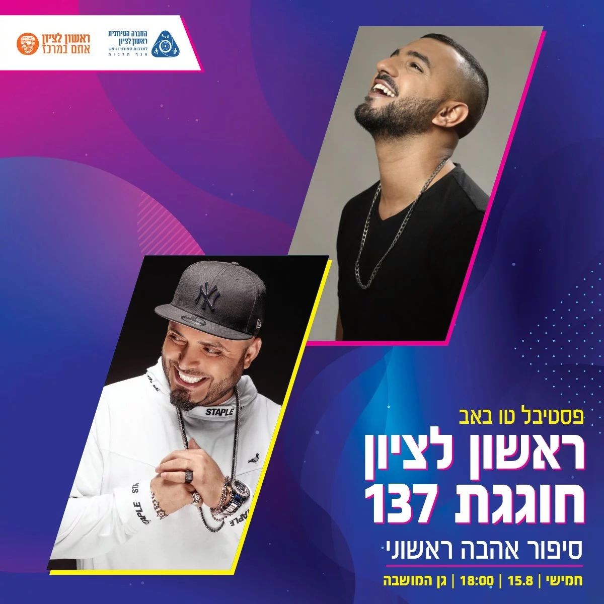 החל ממחר יום חמישי 15/8 ובמהלך 3 ימים יציינו ברחבי ראשון לציון בשלל מופעים את יום ההולדת ה – 137 של ראשון לציון.