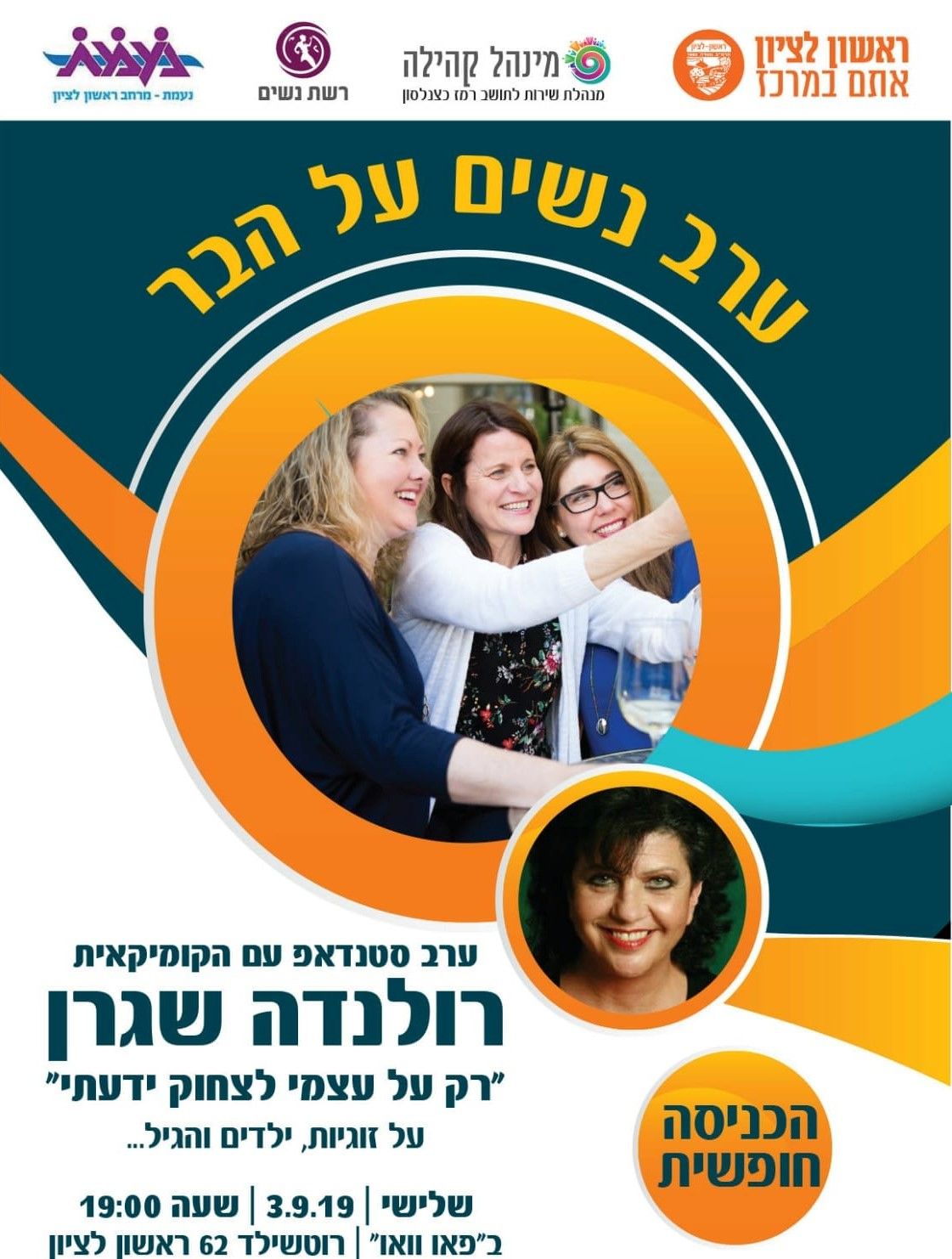 מינהל הקהילה ורשת נעמת, מזמינות את נשות שכונות כצנלסון ורמז בראשון לציון לערב "נשים על הבר" עם רולנדה שגרן שיתקיים ביום שלישי 3.9 בפאו וואו- רוטשילד. לפרטים והרשמה: מנהלת שירות לתושב רמז כצנלסון 03-6438771