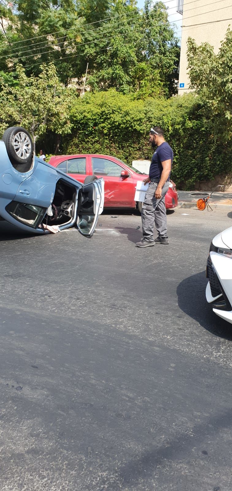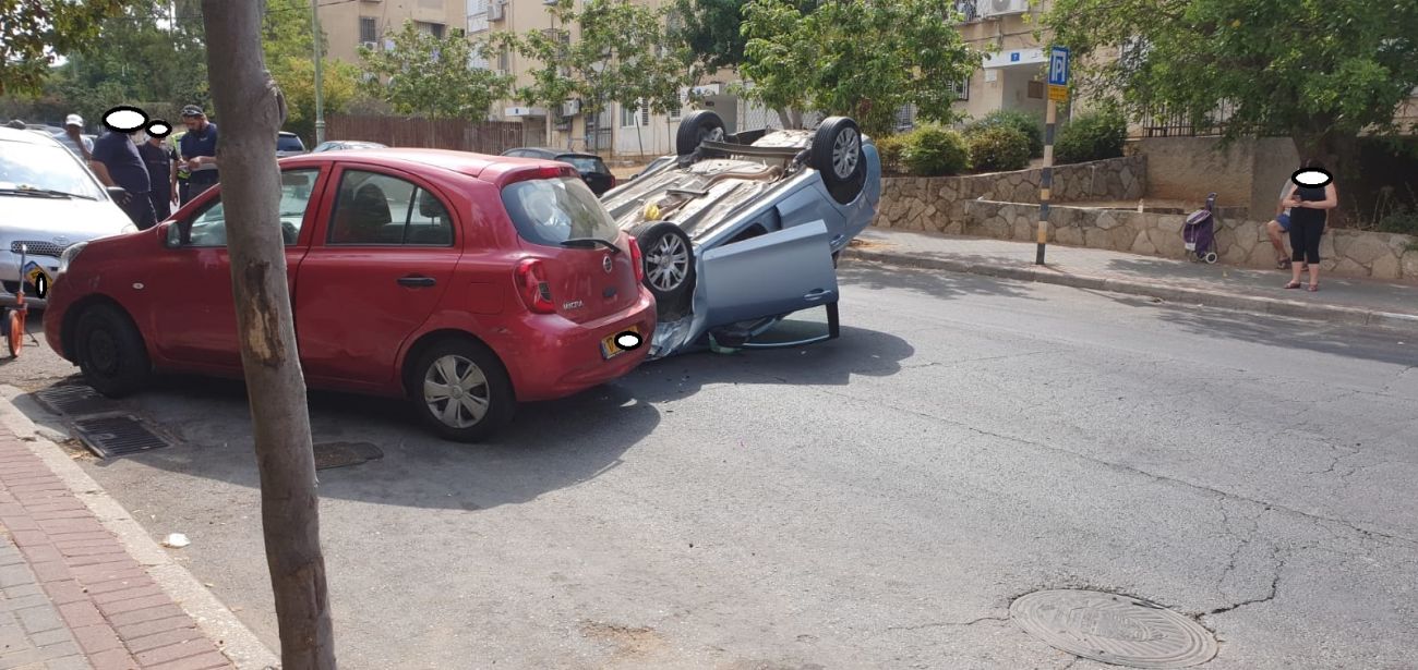 יום חמישי 12/9 לפני זמן קצר ברחוב חנה סנש בשכונת רמת אליהו בראשון לציון תאונה במעורבות מספר כלי רכב ואחד הרכבים התהפך.
