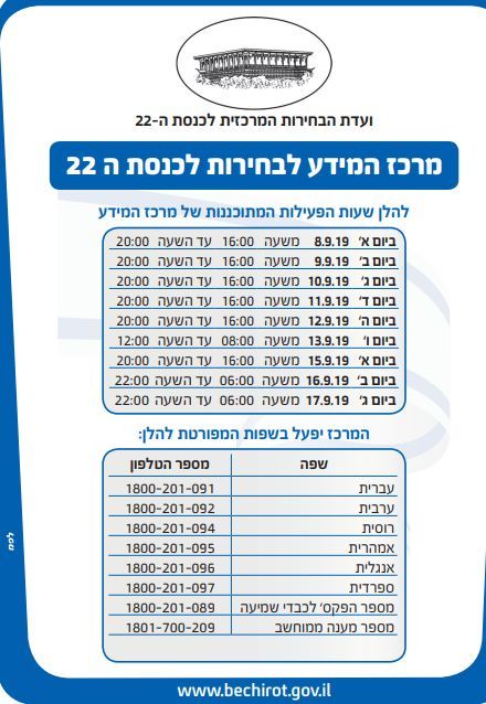 הקלפיות יפתחו בשעה 7:00 עד השעה 22:00