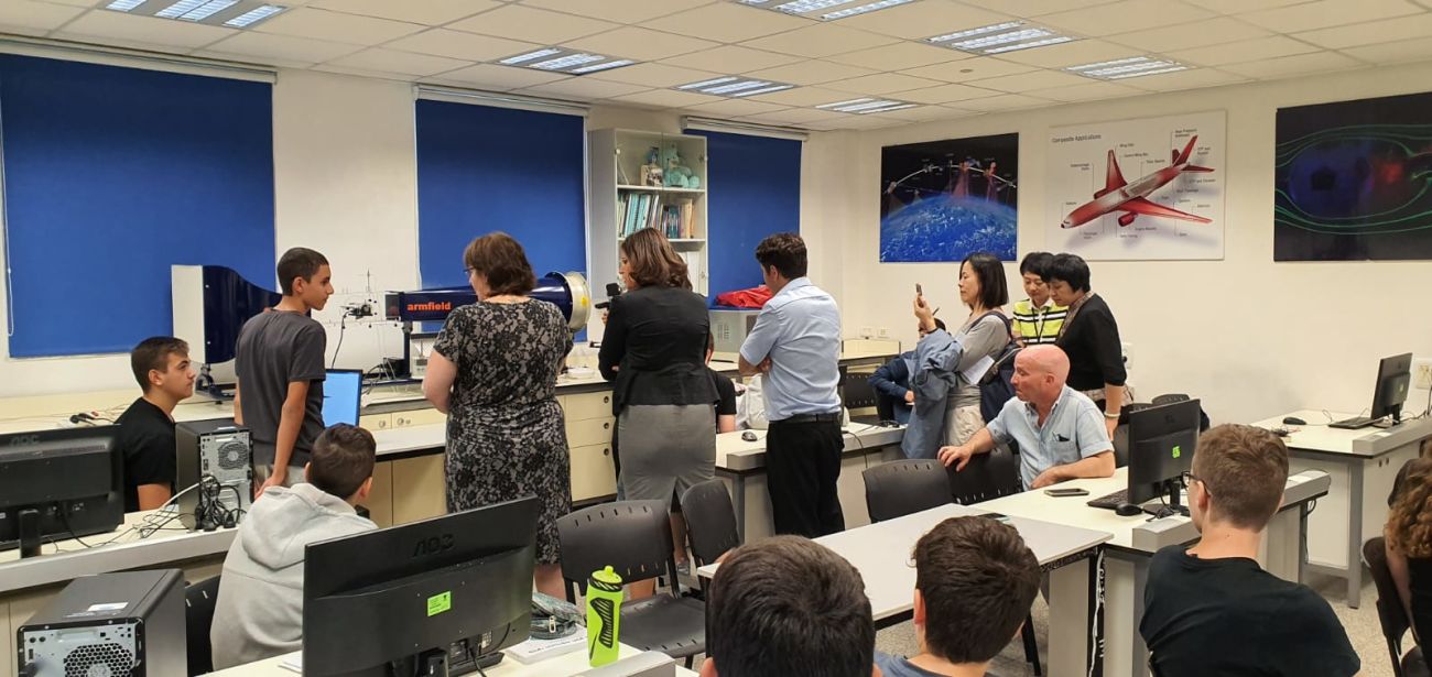 כמו כן, תלמידי המגמה הסבירו והדגימו למשלחת הסינית שימוש במתקן ניסויי ייחודי של מנהרת רוח והדפסת במדפסת תלת-מימד.