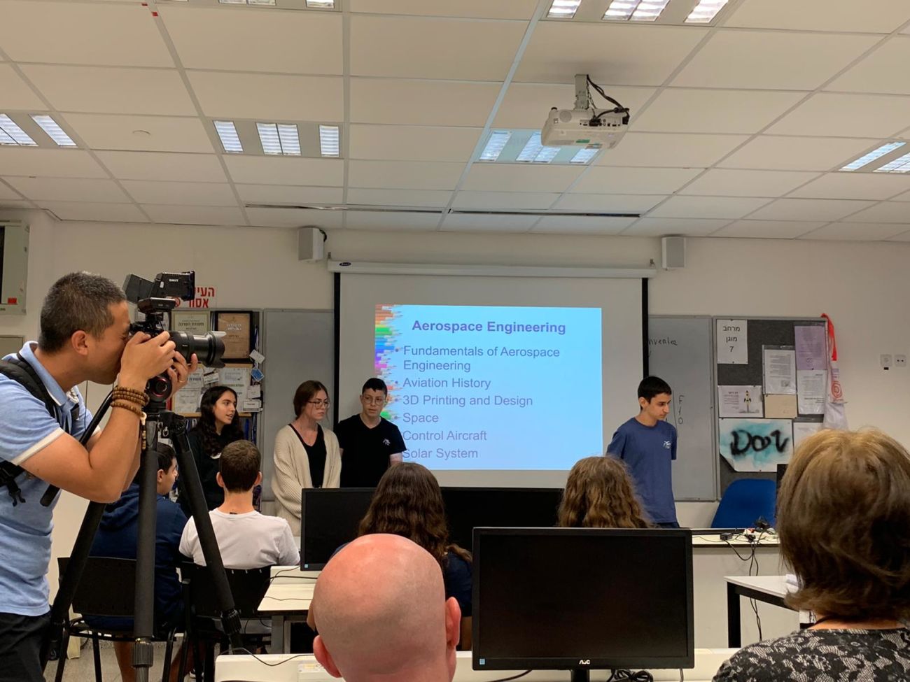 "נוסף על לימוד והתנסות במקצועות עתירי טכנולוגיה, אירוח משלחת בינלאומית מסין במסגרת בית –ספרית חושף את תלמידי המגמה לתרבות ולמתרחש בעולם הגדול ומהווה קרקע פוריה לשיתופי פעולה עתידיים תוך רכישת מיומנות להצגה של נושאים ופיתוח מיומנויות בינאישיות גבוהות ".