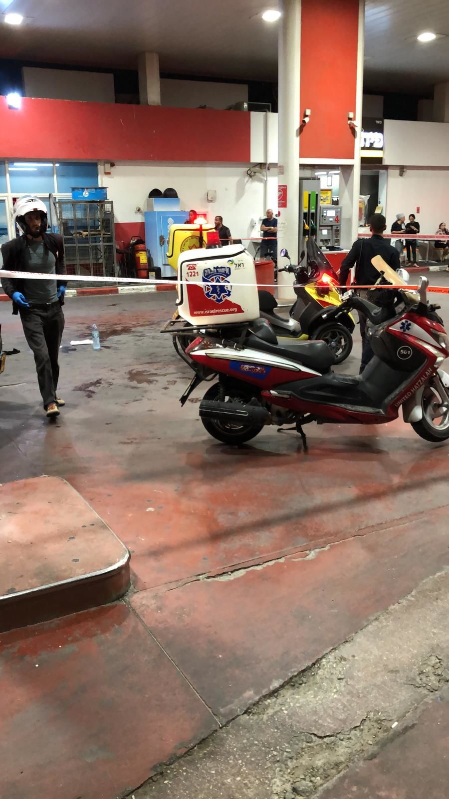 "מדובר בצעיר שנפצע מירי בפלג גופו העליון בתחנת הדלק. לאחר הסיוע הראשוני בזירת האירוע הוא פונה להמשך קבלת טיפול רפואי בבית החולים כשמצבו מוגדר בינוני עד קשה".