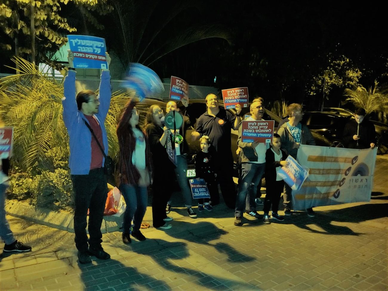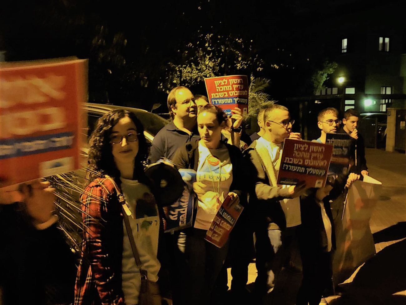 הפגנה הערב שישי מול הבית של ראש העיר רז קינסטליך בנושא התחבורה הציבורית בשבת... מצורף סרטון ותמונות
