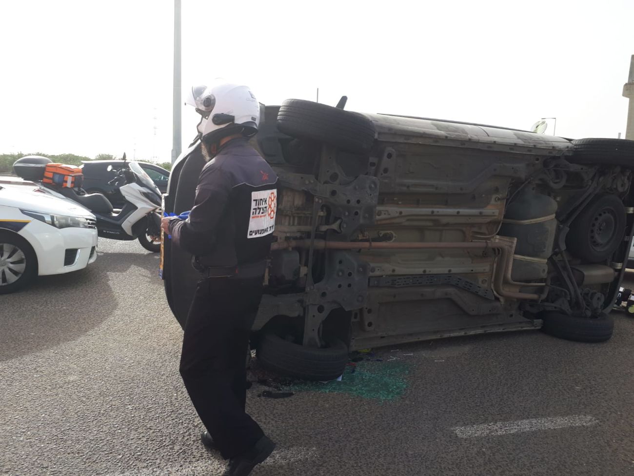 יום שישי 13/12 שעה 09:15. במוקד איחוד הצלה התקבלה קריאה על תאונת דרכים עם מעורבות רכב הפוך במחלף משה דיין בראשון לציון. כונני איחוד הצלה , חובשי מד"א, לוחמי האש ומשטרה העניקו סיוע וטיפול ל - 2 נפגעים. האחד באורח קל עד בינוני ונפגע נוסף באורח קל. בסיום הטיפול הראשוני פונו הנפגעים באמבולנס לבית החולים וולפסון בחולון להמשך בדיקה וטיפול.