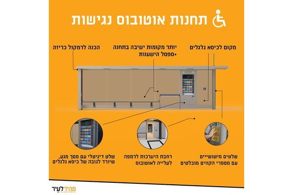 התחנות עתידות להכיל: מקום ייעודי לכסא גלגלים, רחבת היערכות לעלייה לאוטובוס, שלט דיגיטלי נגיש, שיורד לגובה של כסא גלגלים, שלטים מישושיים עם תבליטי מספרי הקווים העוברים בתחנה, יותר מקומות ישיבה מהרגיל, ספסל הישענות, הכנה לרמקול בתחנה, בנוסף לכריזה מהאוטובוסים, ככל שיידרש
