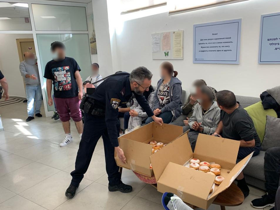 וגם, כמדי שנה, פקחי ושוטרי יחידת השיטור העירוני ביקרו השבוע בעיר במוסדות לגמילה מסמים, הימורים ואלכוהול בעיר וחילקו למשתתפים סופגניות עם ברכת חג שמח. המטופלים הופתעו לטובה לראות את הפקחים והשוטרים שאותם היו פוגשים בדרך כלל בנסיבות אחרות.