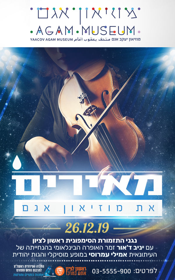 מופע חנוכה ייחודי במוזיאון אגם! זמר הקונטרה-טנור הבינלאומי יניב ד'אור עם נגני התזמורת הסימפונית ראשון לציון בעיבודים מפתיעים למיטב המשוררים והיצירות הישראליות. יום חמישי 26/12 שעה 20:30 לתושבי ראשון, אזרחים ותיקים וסטודנטים 80 ₪ לפרטים 03-5555900
