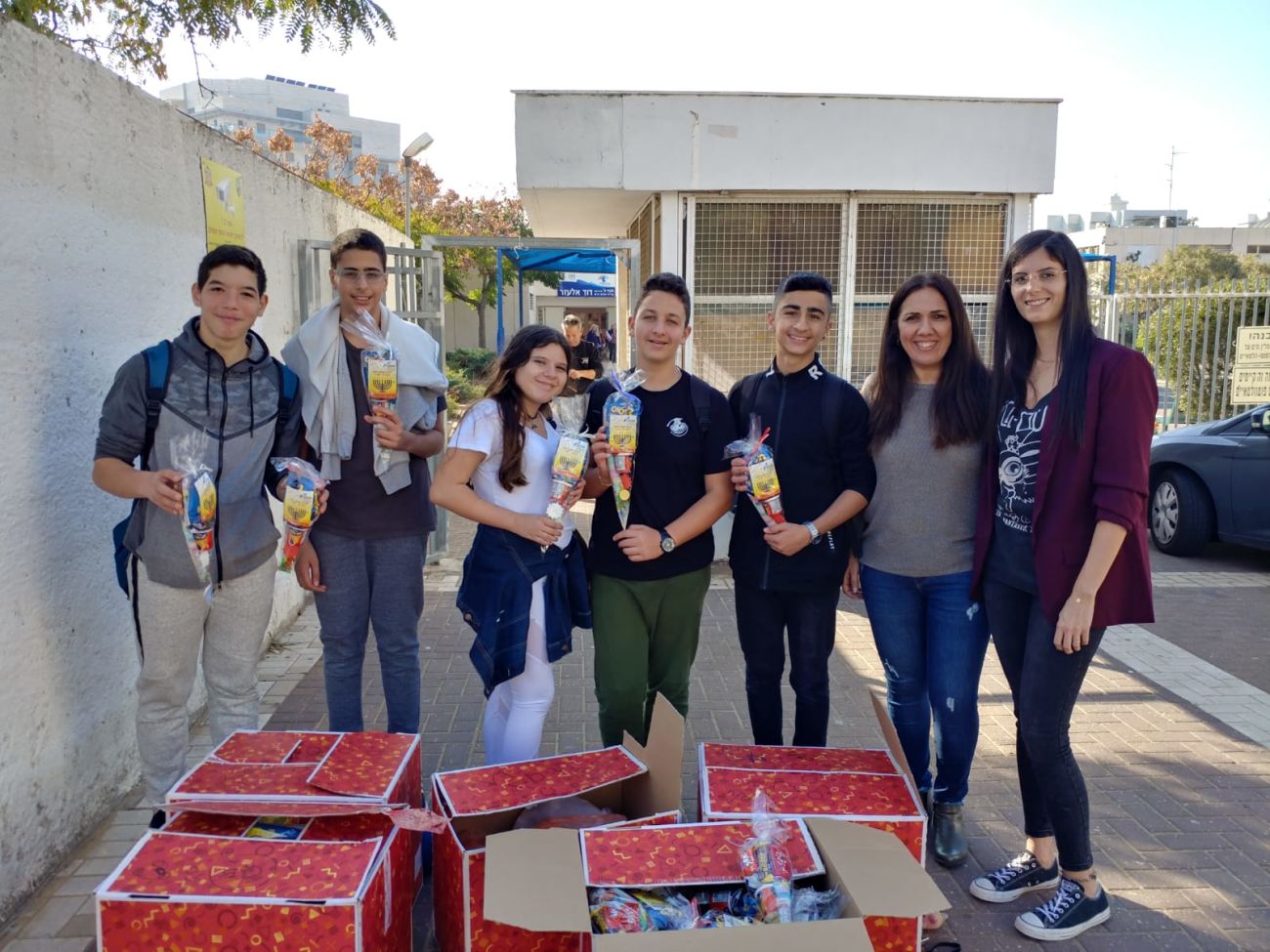 ובתלמידי חטיבת מקיף ט' שתרמו כסף לקניית שקיות ממתקים של אקי"ם ואת השקיות תרמו לבית החולים לבריאות הנפש בנס ציונה.