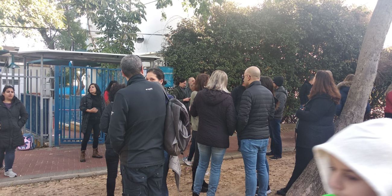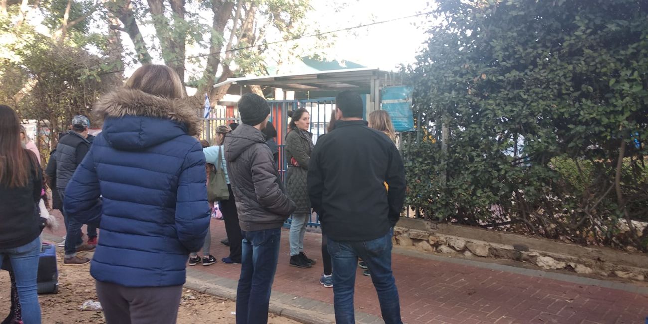 אבי חיים בשערי בית הספר מודיע להורים על הבדיקה