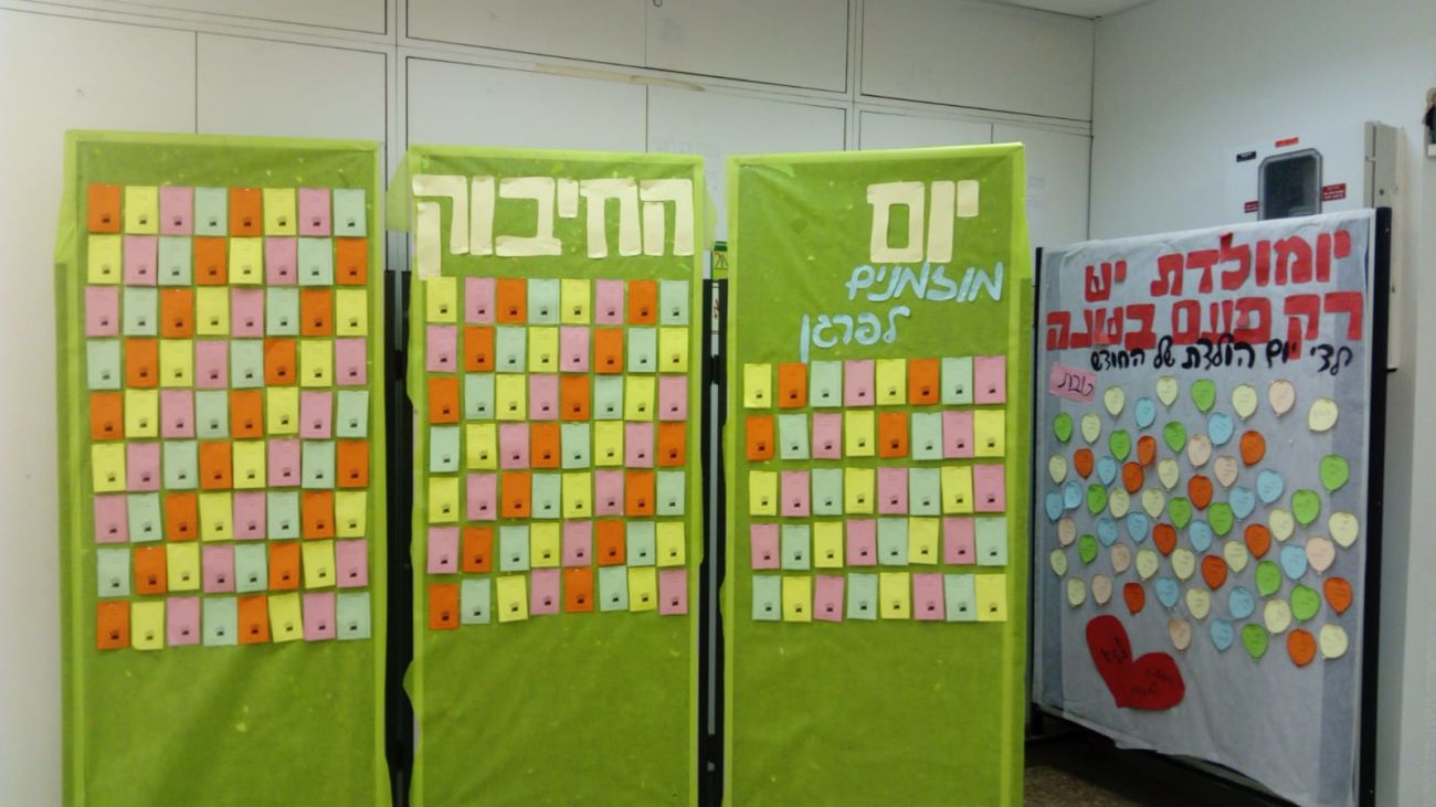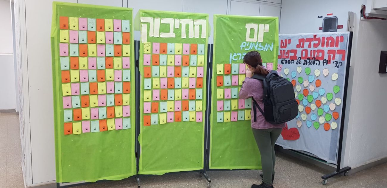 את יום החיבוקים שחל השבוע החליטו בחטיבת הביניים טביב בראשון לציון לציין בפעילות מיוחדת במינה. תלמידי החטיבה פתחו את היום שכולו נועד לחבק ולאראות אהבה למשפחה וחברים בפעילות כיתית בה כל אחד מהתלמידים פירגן לחבר וכיבד אותו בממתק או חטיף. בנוסף בכניסה לבית הספר הוצב לוח ובו התלמידים היו צריכים לכתוב ולפרגן לחבריהם, למורים, לעובדי המנהלה ולכל מי שהם רצו לחבק באותו היום.