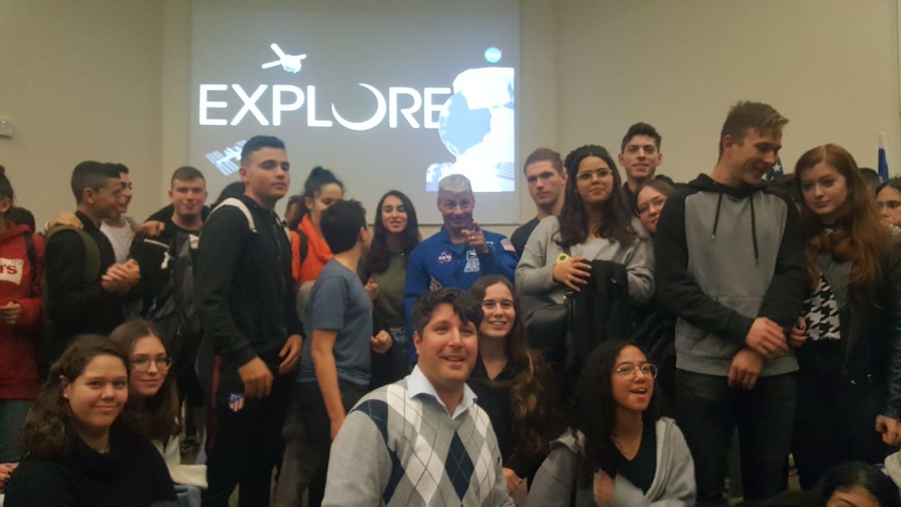 במסגרת שבוע החלל נפגשו תלמידי בית הספר עם האסטרונאוט מראק ואנדר היי. מארק ואנדה היי נבחר על ידי נאס"א לתפקיד אסטרונאוט ב- 2009 והוא שימש כמהנדס טיסה על סיפון תחנת החלל הבינלאומית. מראק העשיר את התלמידים בדוגמאות והסברים על ההבדלים והכוחות הפועלים בכדור הארץ ובחלל. בסוף ההרצאה, נערך פנל של שאלות ותשובות בו שאלו התלמידים את האסטרונאוט שאלות מגוונות אודות ההרגשות והתחושות בחלל וקיבלו הסברים פיזיקליים מרתקים אודות היכולת לתמר ולשהות בחלל כאשר כוח המשיכה כמעט ואינו מורגש.