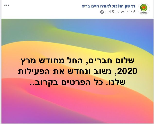 הודעת שפורסמה בדף הפייסבוק של ראשון הולכת לאורח חיים בריא של החברה העירונית