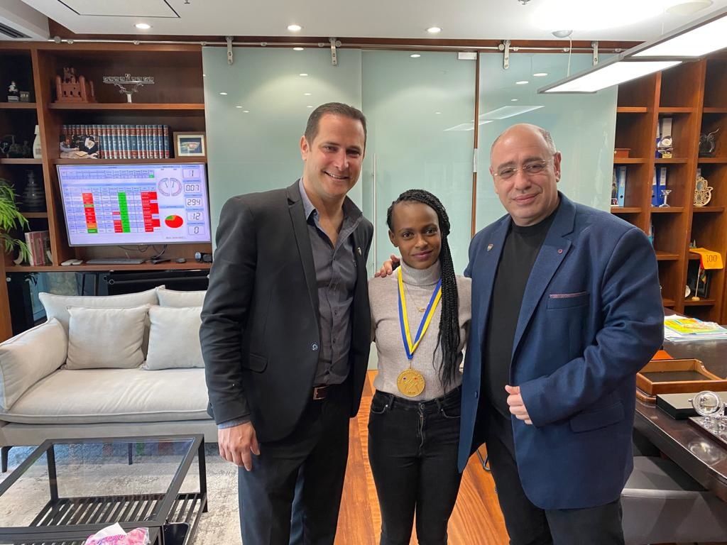 אלופת הטאקוונדו רבקה באייך מראשון לציון נפגשה עם ראש העיר רז קינסטליך לאחר זכייתה במדליית הזהב