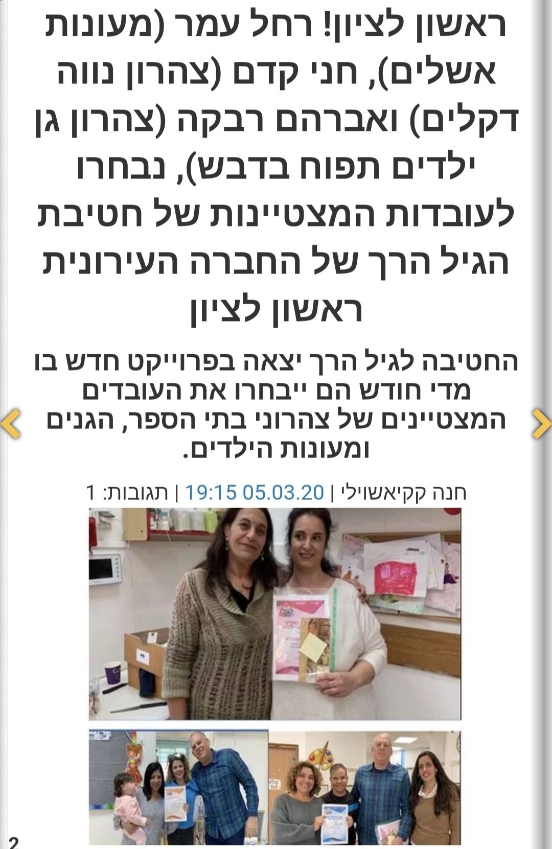 ונסיים בסרטוני מצטיינות חטיבת הגיל הרך של החברה העירונית והמלאכים של ראשון לציון
