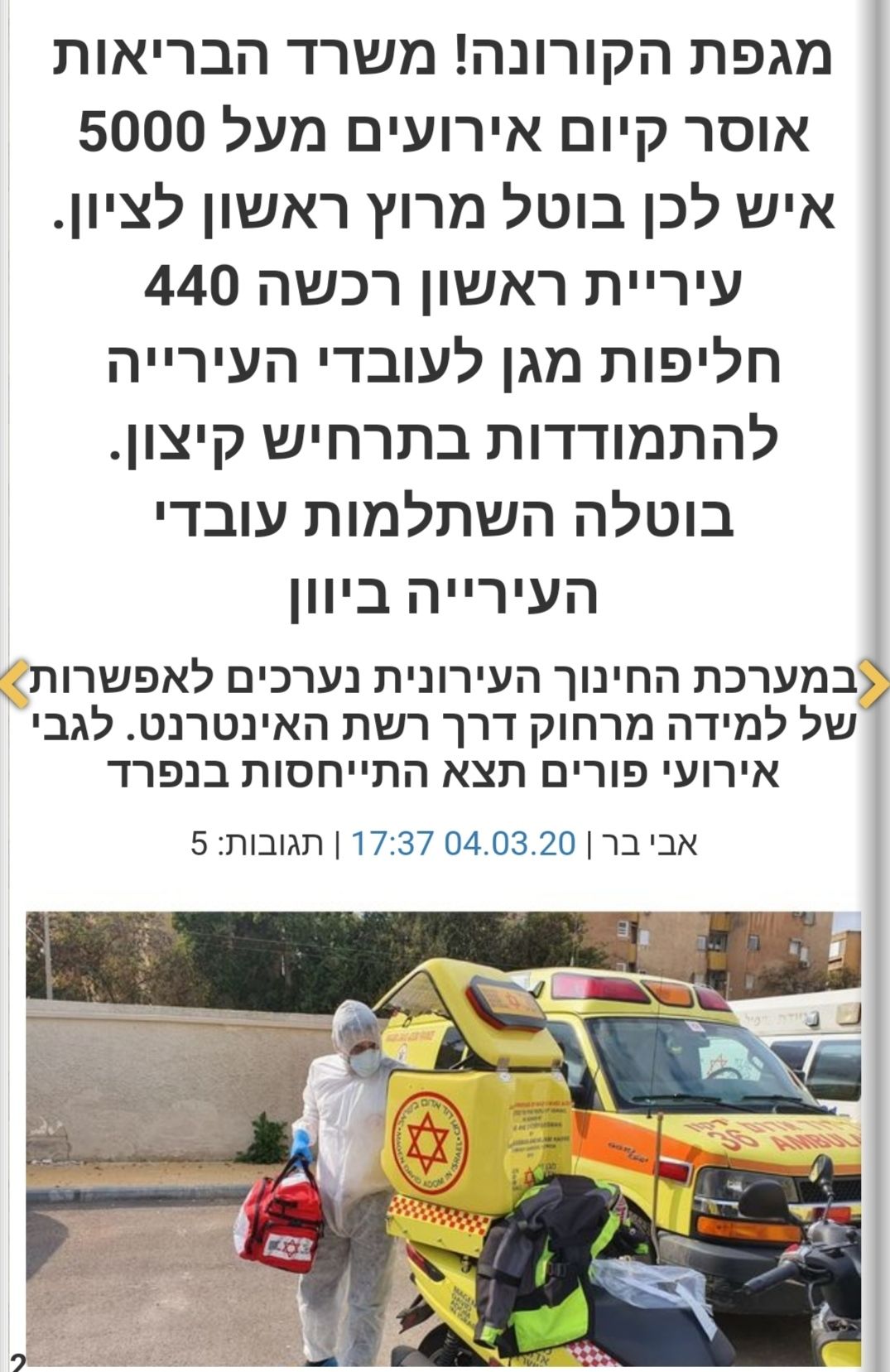 סיכום השבוע be106 ראשון לציון! בהלת הקורונה וביטול אירועי פורים הגדולים; הליכוד ניצח בבחירות בראשל"צ; מצטיינות הגיל הרך של החברה העירונית; ראשון לציון נמצאת במקום השני באחוז הנשים המכהנות במועצות העיר בישראל; כל זאת ועוד בסיכום השבוע של ראשון