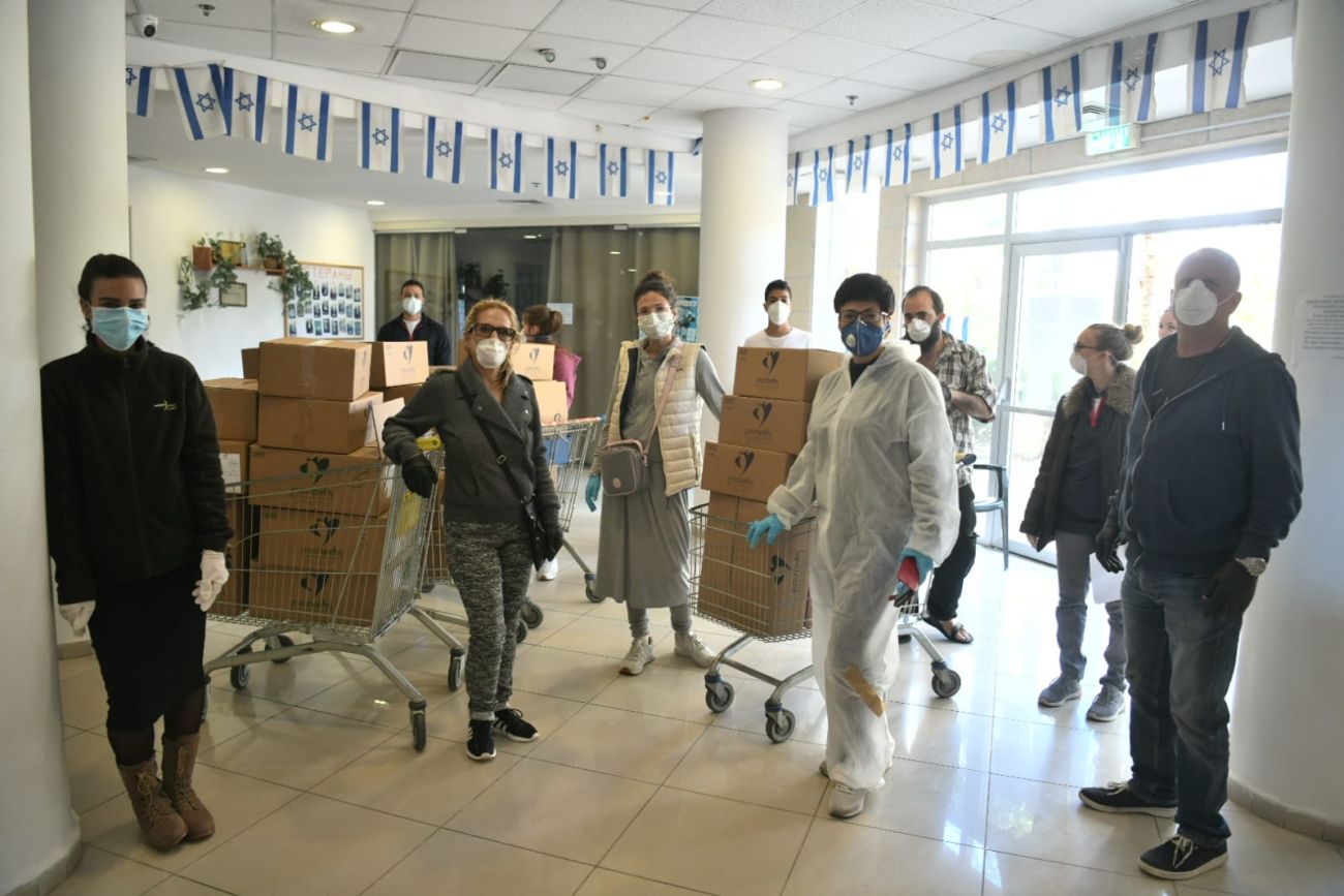 אריזה ושינוע סלי מזון ל-598 בתי אב ע"י מתנדבים.