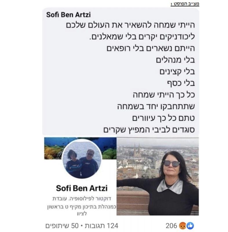 להלן הפוסט של המנהלת