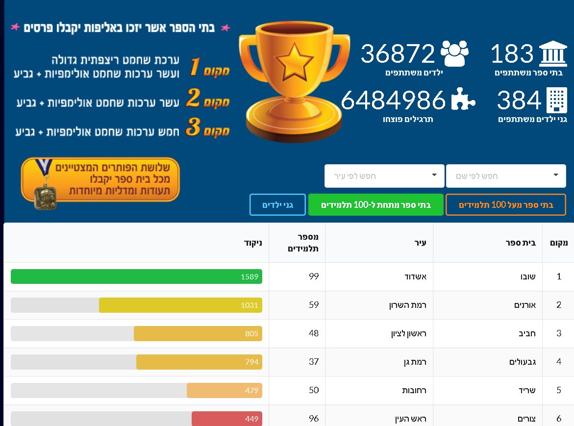 בסיום התחרות הוכרזו הזוכים בתחרות- בית ספר חביב שזכה במקום השלישי בקטגוריית בתי הספר מתחת ל100 תלמידים