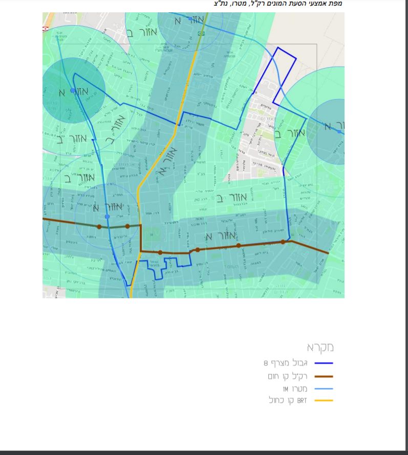 כפי שרואים במפה אמצעי התחבורה יעברו בגבולות האזור ברחובות הראשיים רחוב הרצל וירושלים