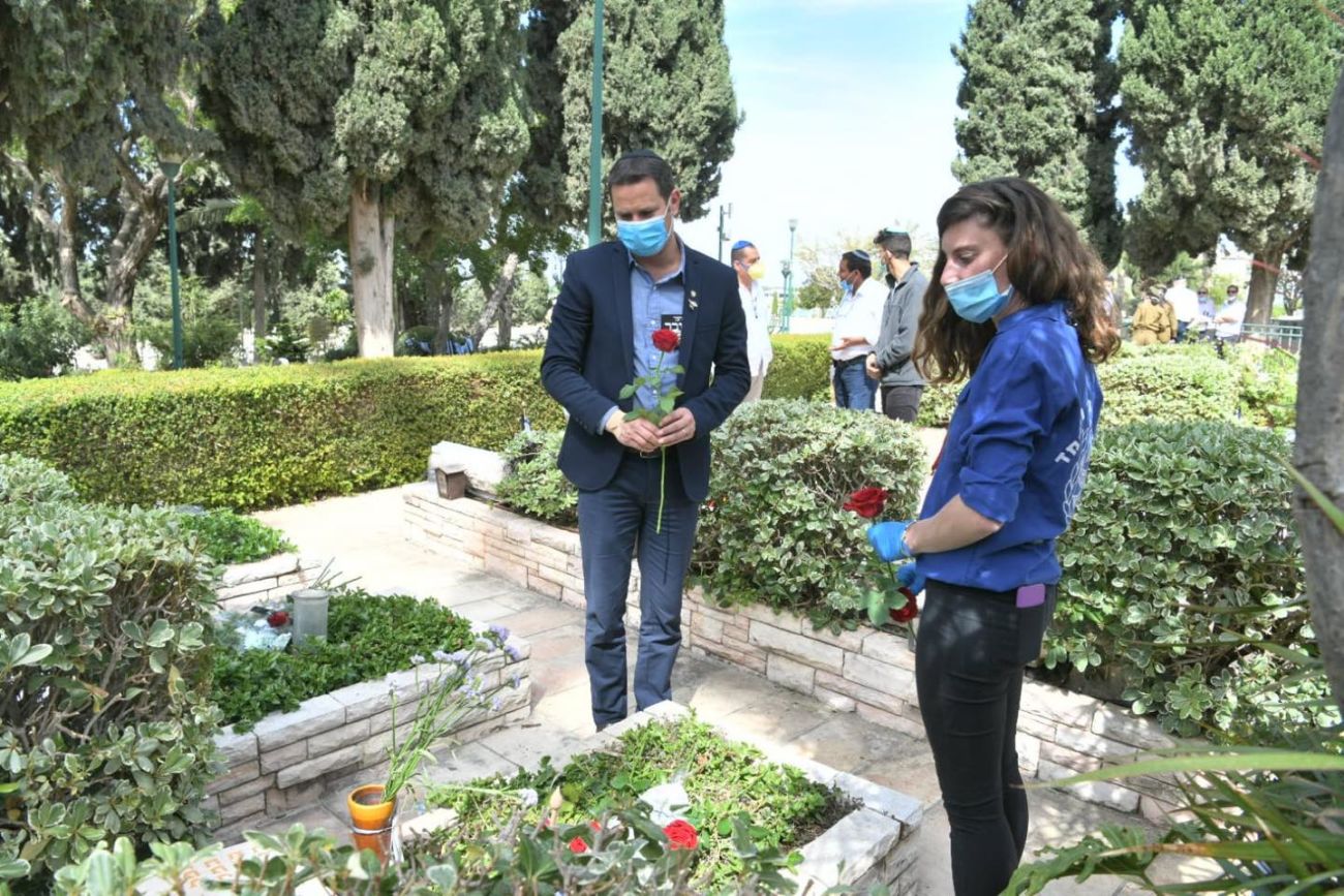 ראש העיר, רז קינסטליך צוות עיריית ראשון לציון ובני הנוער בעיר הגיעו היום (שני) אל בית העלמין הצבאי על מנת לחלוק כבוד לזכר חללי ראשון לציון שנפלו על הגנת המדינה. בצל הנחיות משרד הבריאות והאיסור על הגעה אל בתי העלמין, מחר - יום הזיכרון, הגיעו בני הנוער יחד עם ראש העיר,והניחו פרחים על קברי הנופלים.