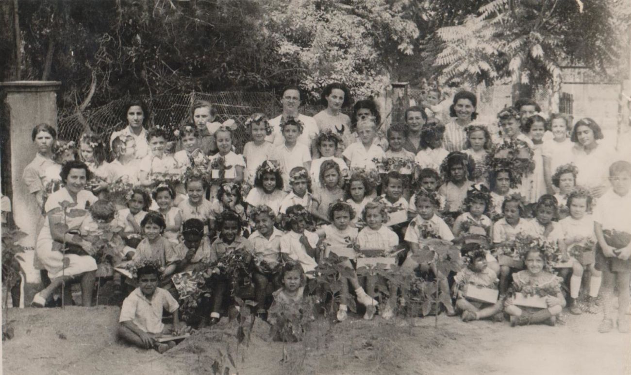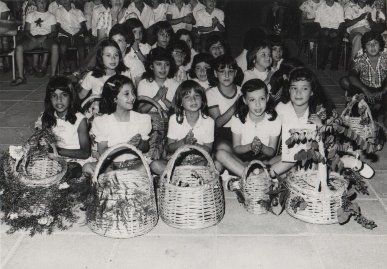 מוזיאון ראשון לציון חושף תמונות מלפני קום המדינה בו נראים התושבים וילדי המושבה בחגיגות החג שלוו בהכנת טנא עם תוצרת הגינות הביתיות וטקס הביכורים שנערך ברחבת בית העם. קרדיט: התמונות באדיבות מוזיאון ראשון לציון