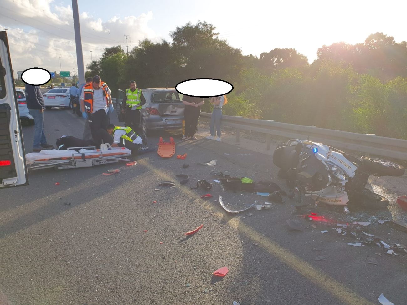 הבוקר שני 25/5 בסביבות השעה 06:45. שוטר רוכב אופנוע נסע בכביש 4 ליד גשר ראשון לציון מדרום לצפון. עקף מימין ולא הבחין ברכב החונה בשוליים ופגע ברכב. כתוצאה מכך השוטר רוכב האופנוע נפצע בינוני ופונה לבית החולים