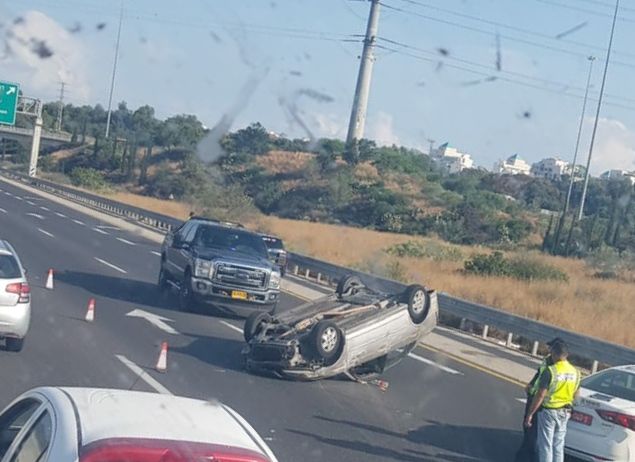 רכב התהפך בכניסה לראשון לציון, כביש 431 נחסם