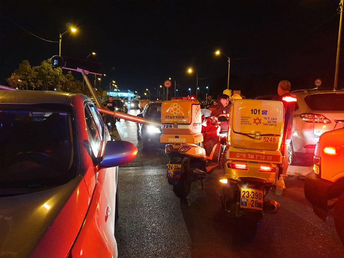 בעקבות תאונה עמוד תאורה קרס על רכב בראשון לציון, 4 פצועים קל