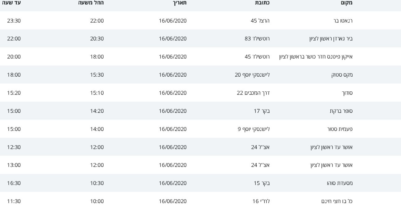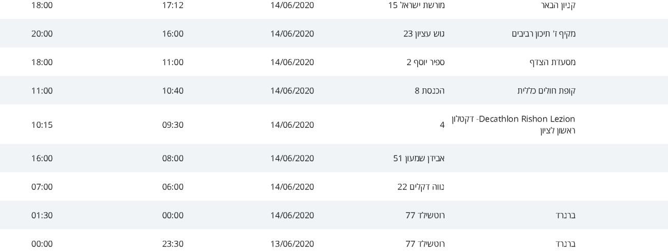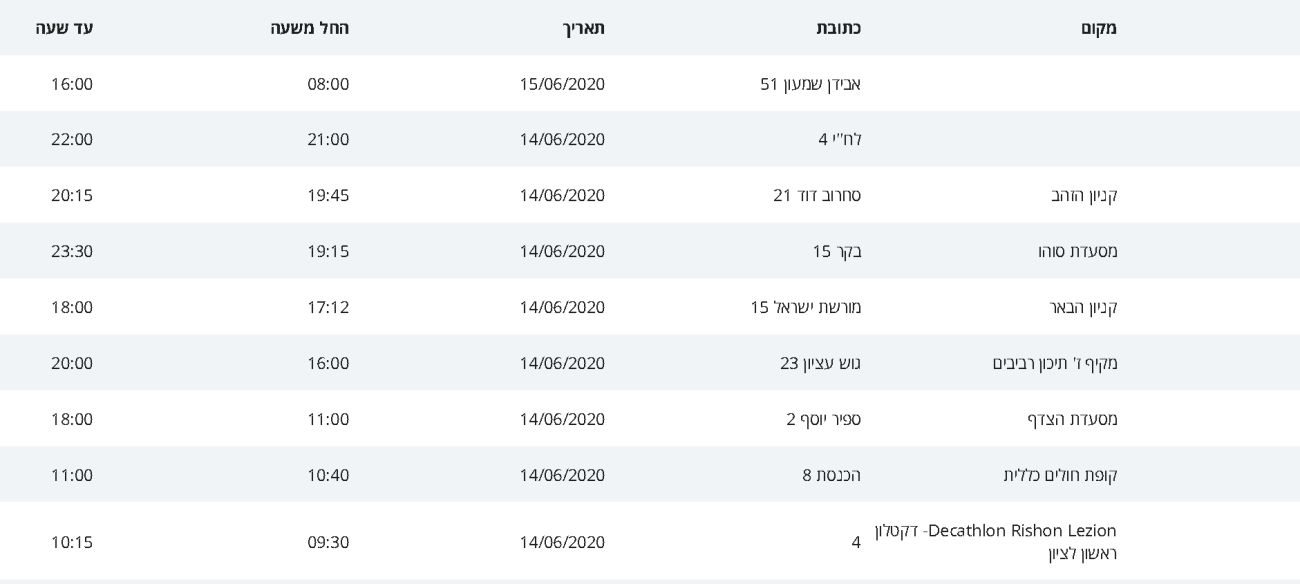| יום שבת 27.6.20 | יום שישי 26.6.20 | |